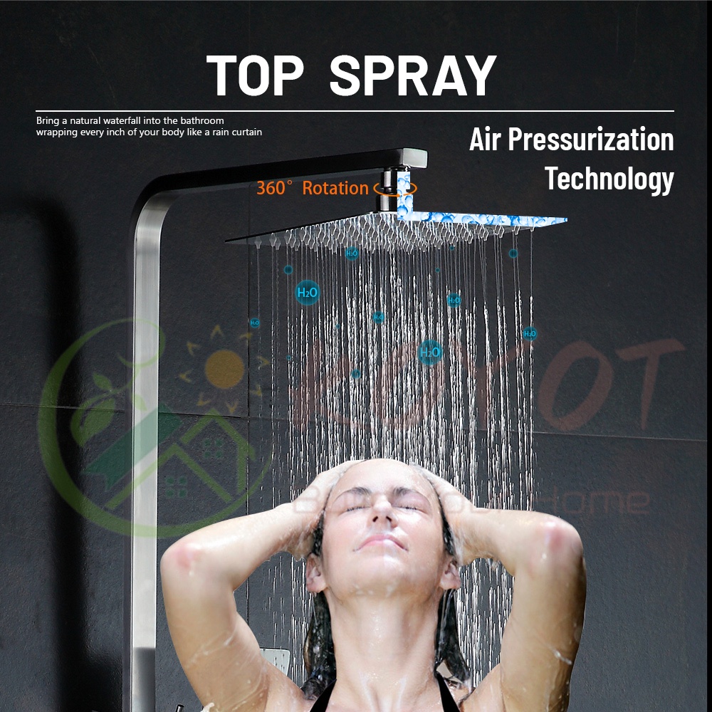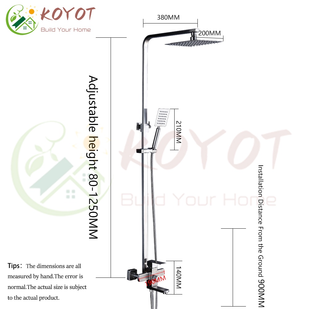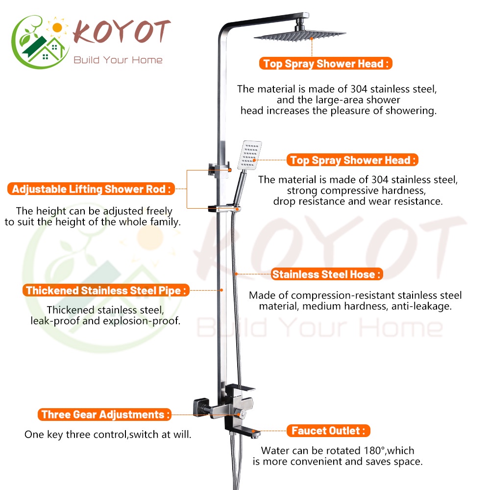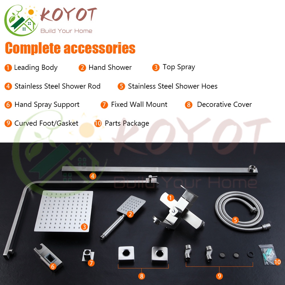 KOYOT 304 Stainless Steel Bathroom Hot and Cold Square Rainfall Shower Set Mixer Faucet Matte Design