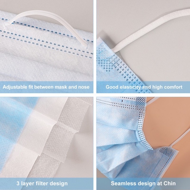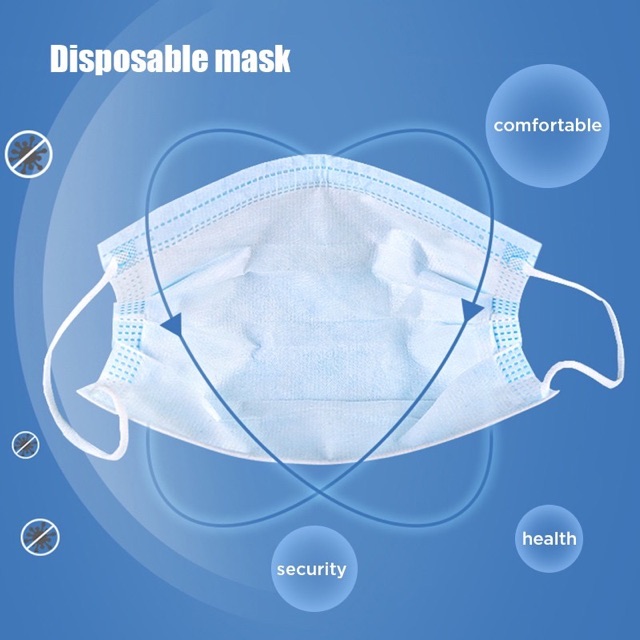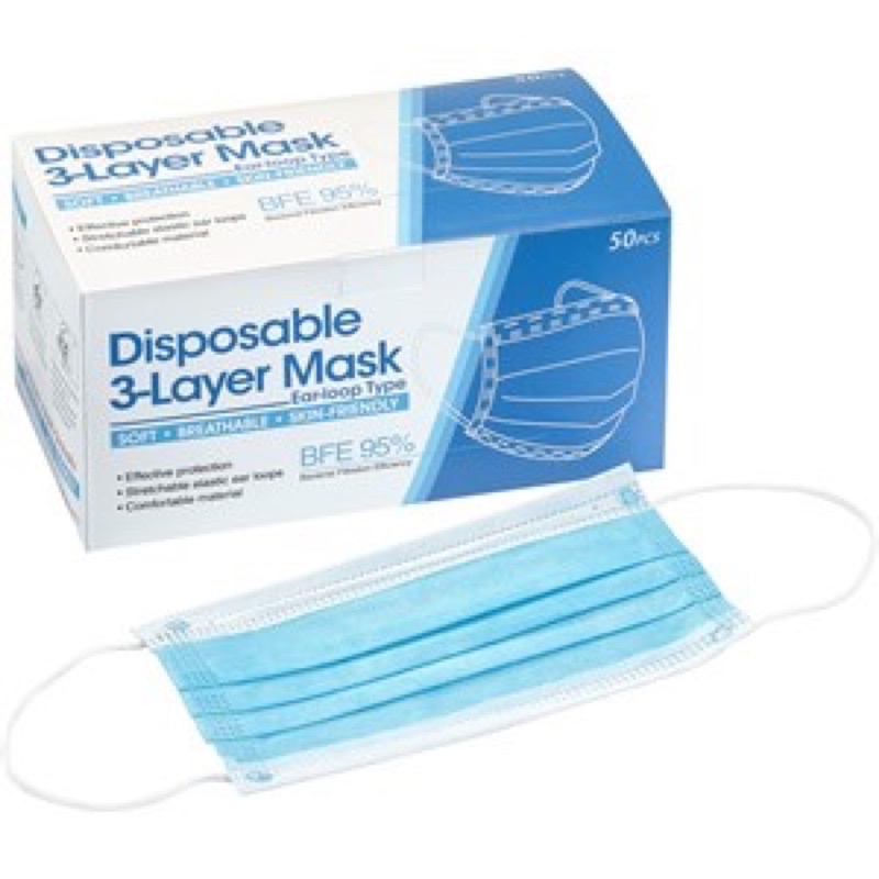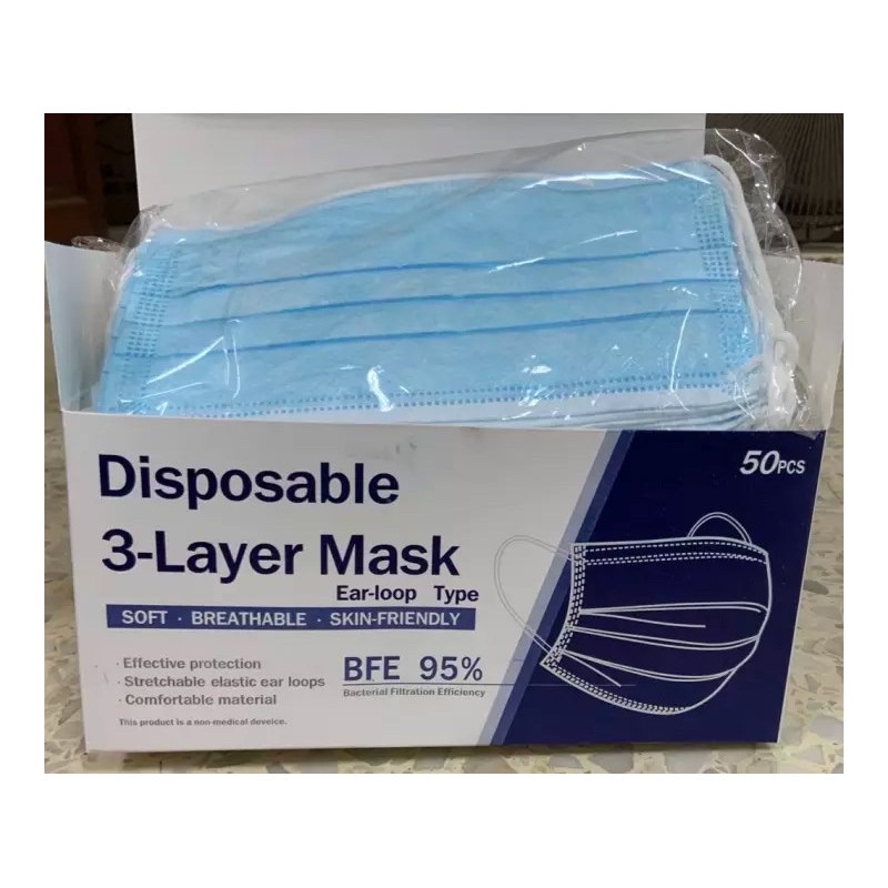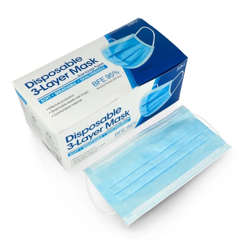 50PCS Box Face Mask Disposable 3ply Manufacturer Non Woven Blue Face Masck Ear Loop Type