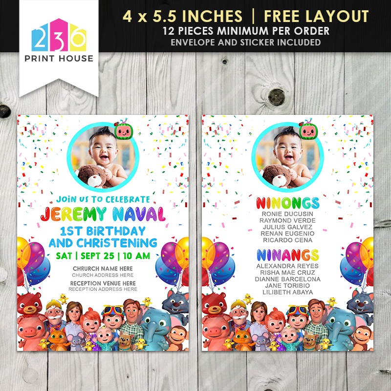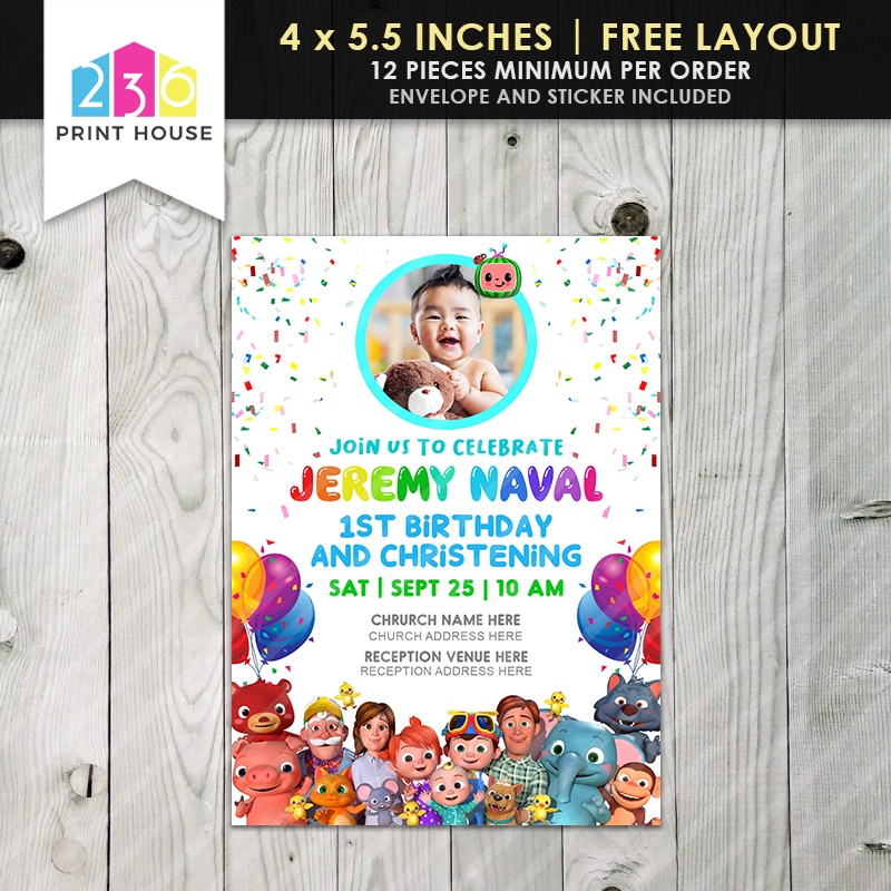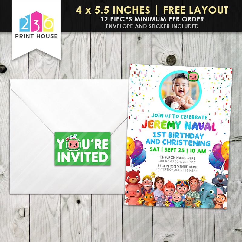 Cocomelon Themed Invitation • Birthday or Christening Invitation • With Envelope & Sticker