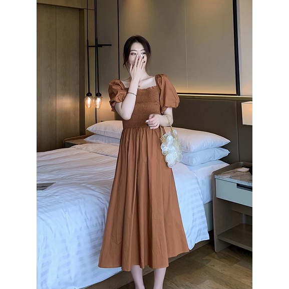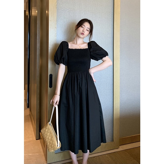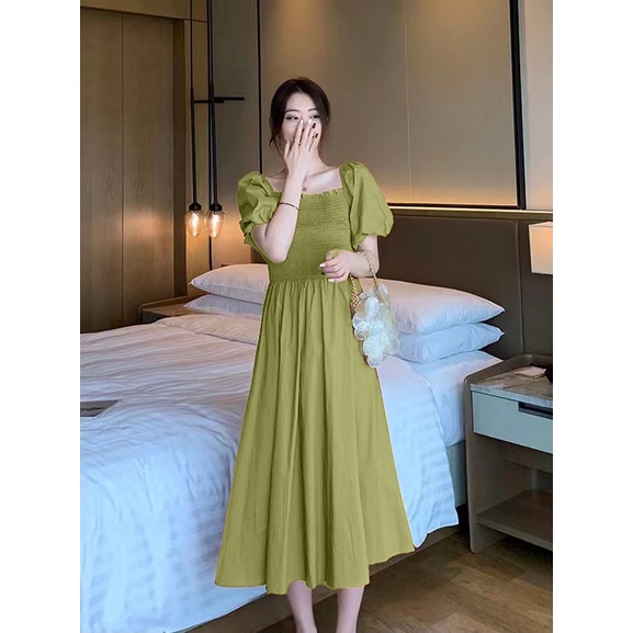 A2774 Miss M Shirred Upper Elastic Sleeve Solid Babydoll Smock Dress