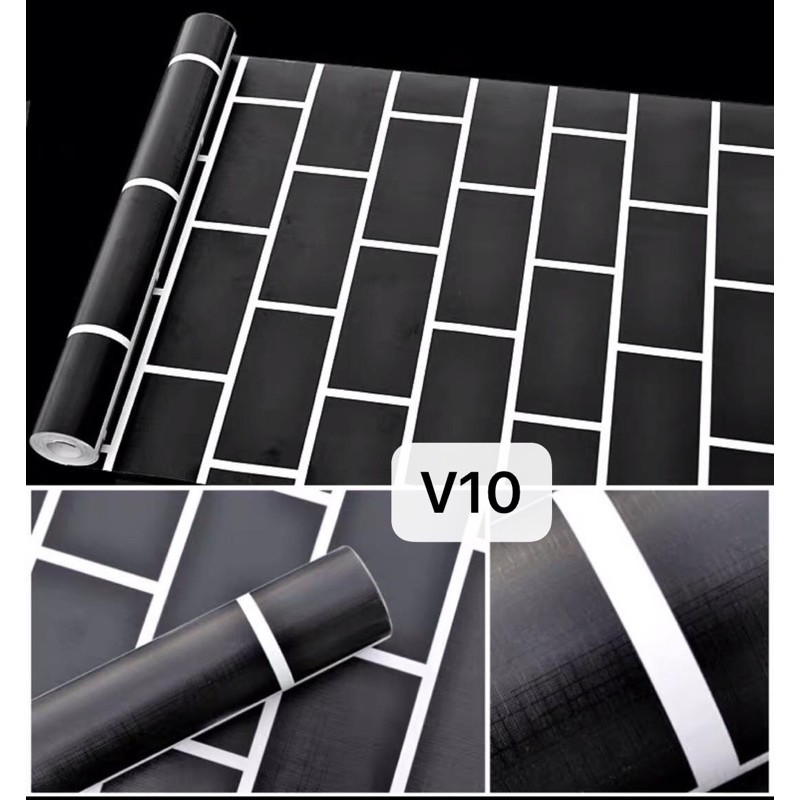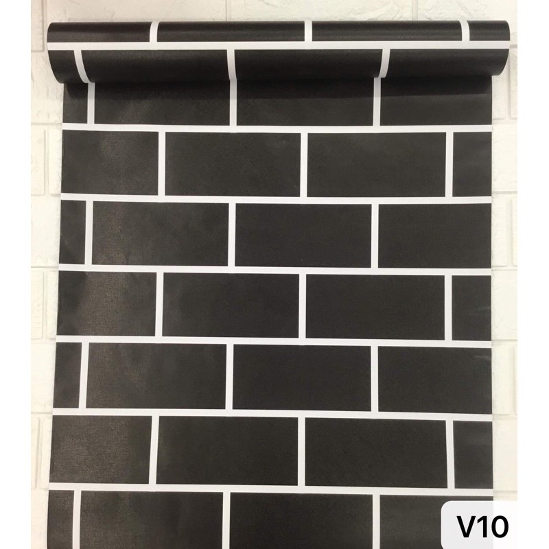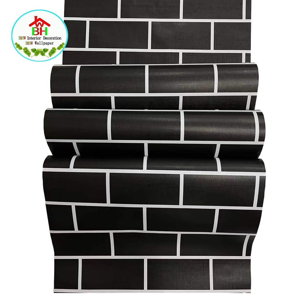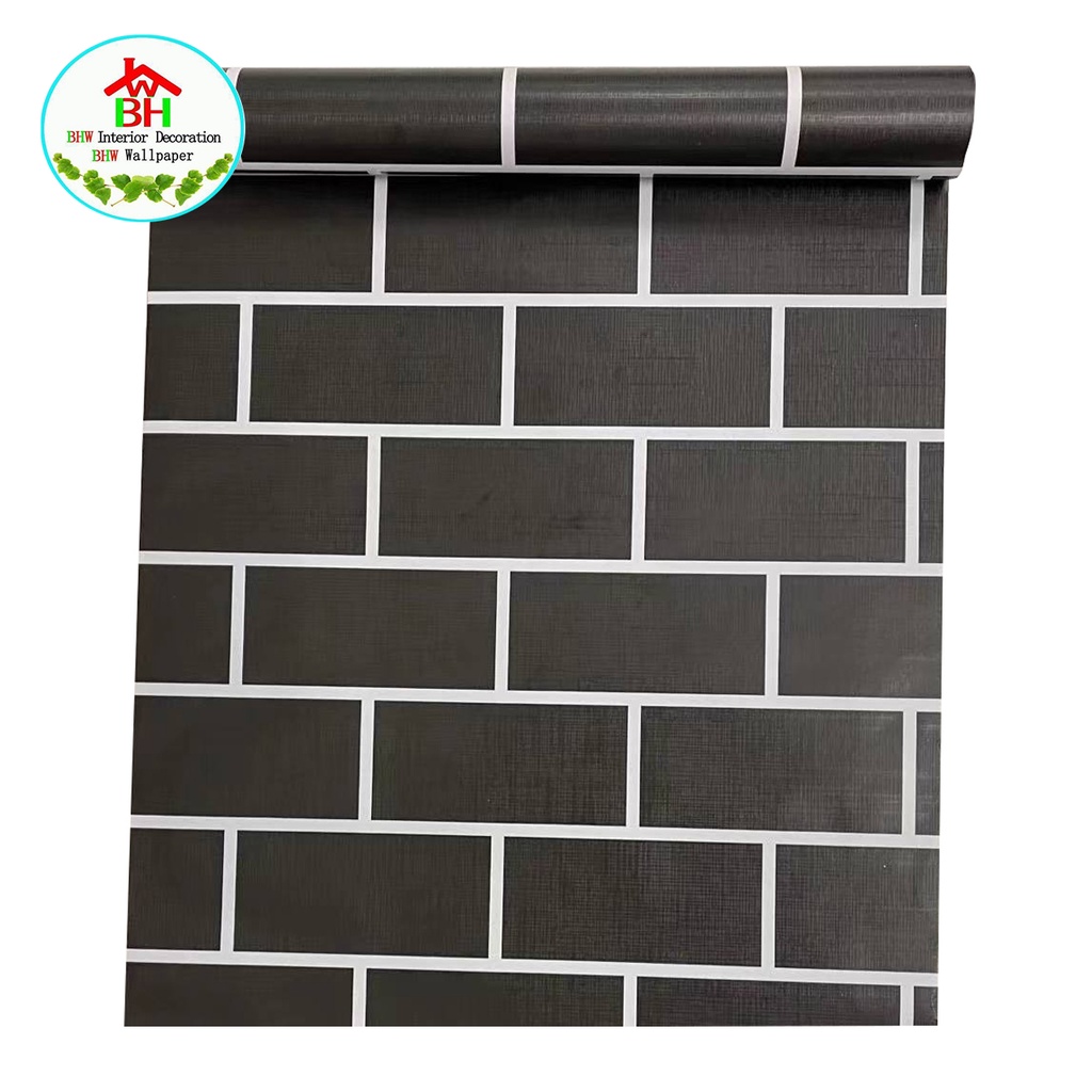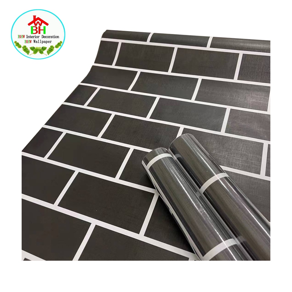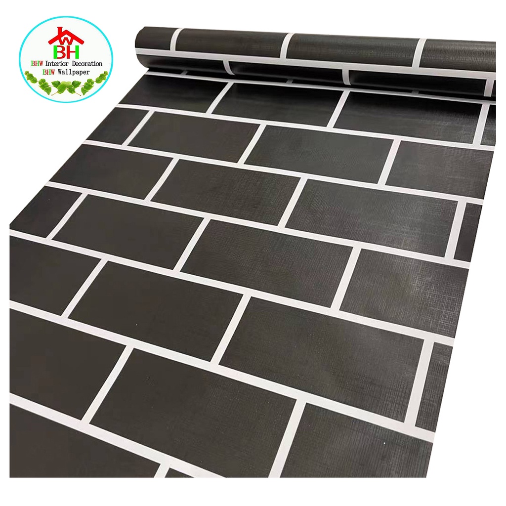 BHW Wallpaper Bricks Design Color Black PVC Waterproof Adhesive Wall Sticker V10