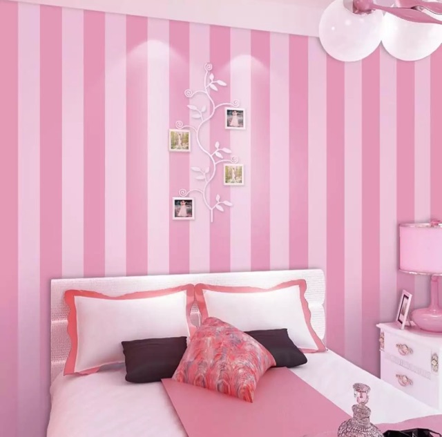 BHW Wallpaper Self-Adhesive PINK Stripe Design PVC Waterproof Wall Stiker R14