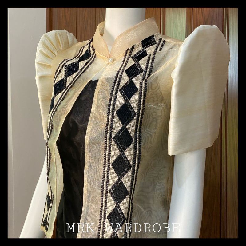 Long Bolero Mestiza Terno/Filipiniana Top- Chinese Collar Baliwag