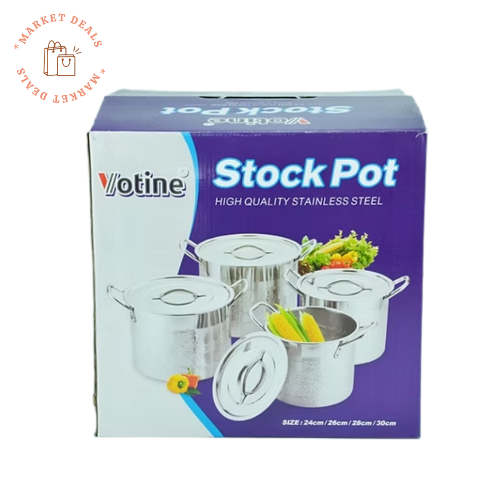 Votine Stock Pot Stainless 24/26/28/30cm Glass Lid / Soup Pot 4 PCS Set