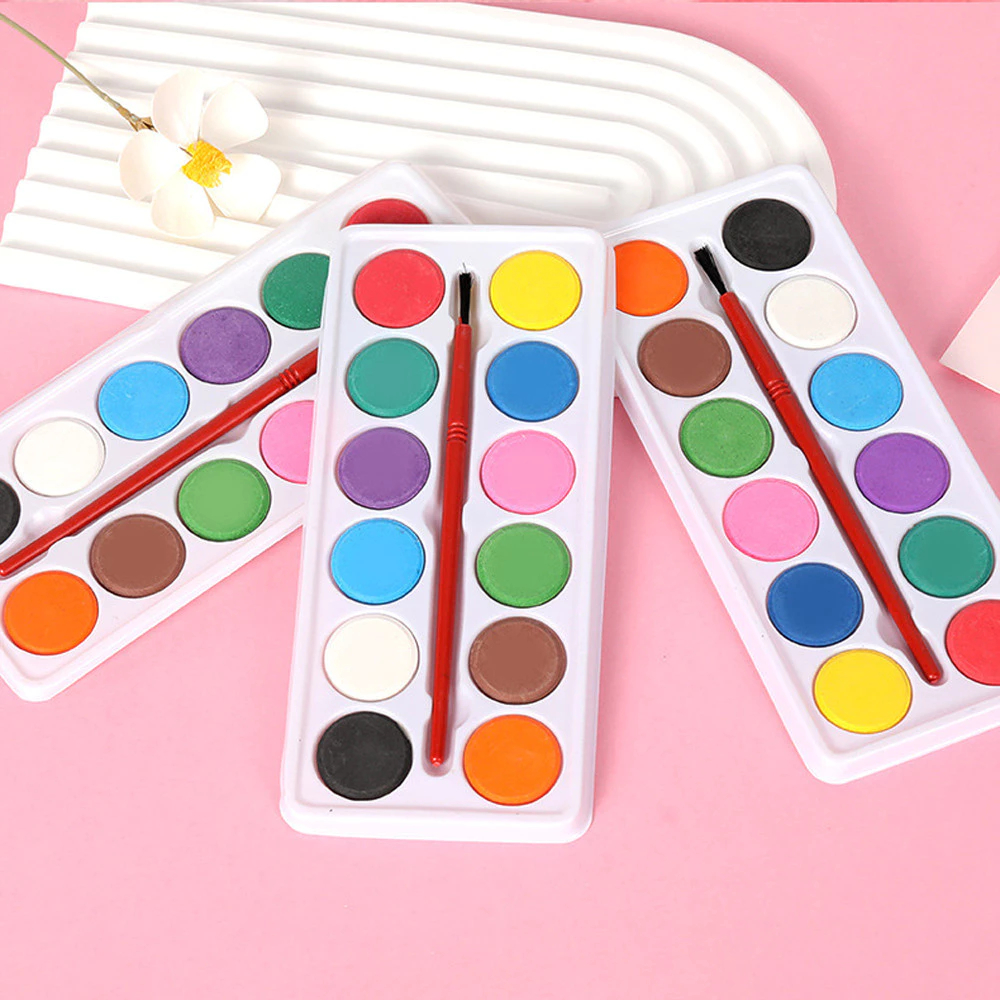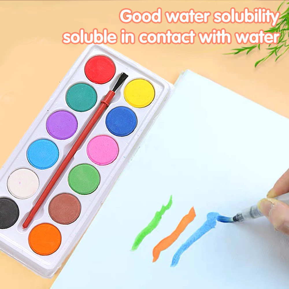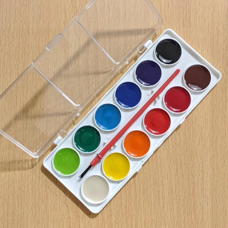 12-Color Solid Watercolor Pigment Set for Students' Sketching & Painting