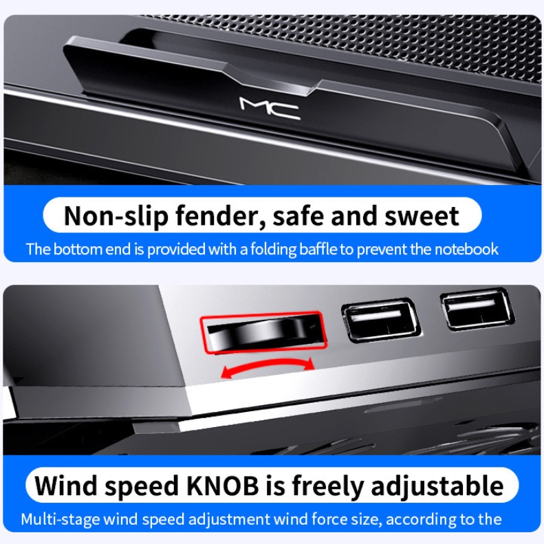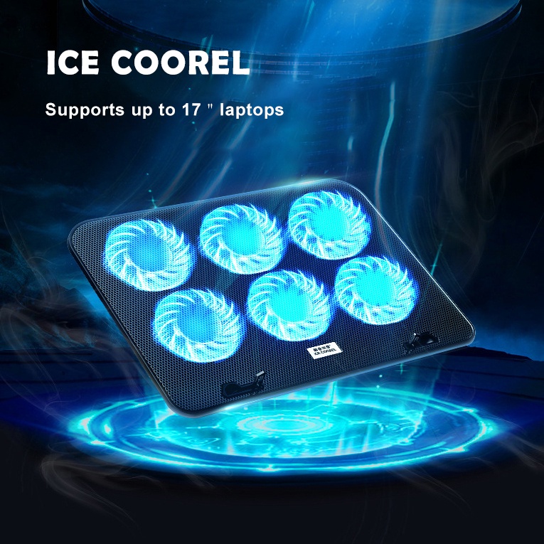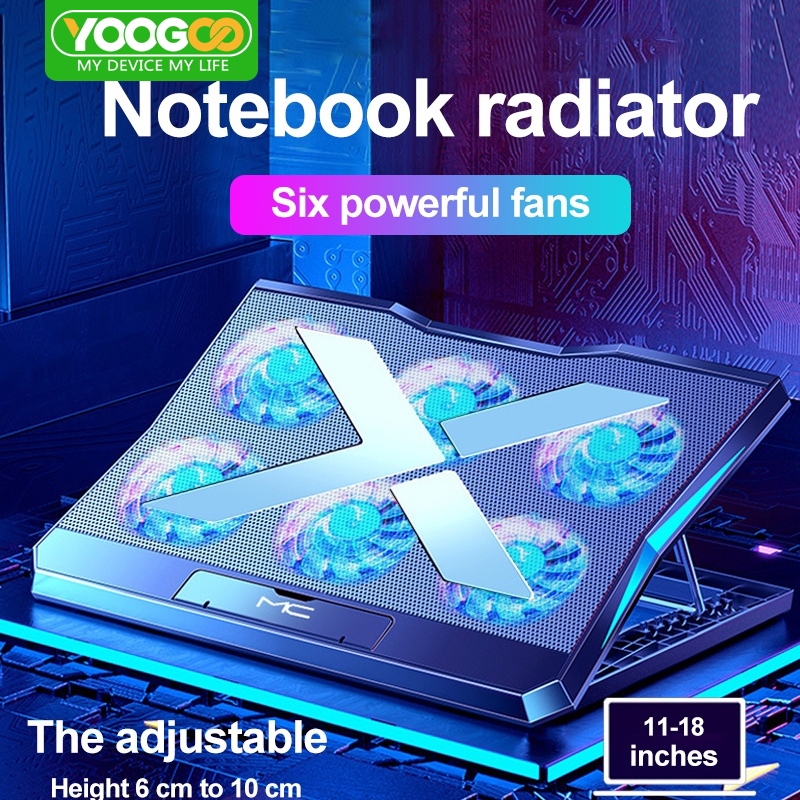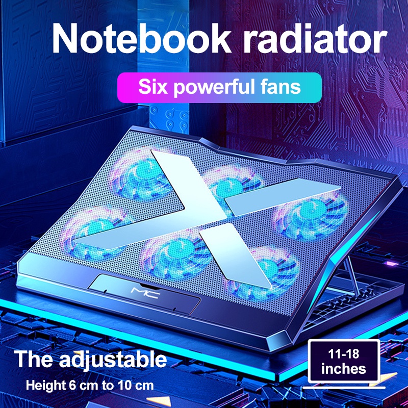 6 Fans Laptop Cooling Pad Led Screen Two USB Port Cooler PadRGB Light Notebook Stand for 11-18 inch