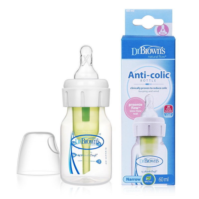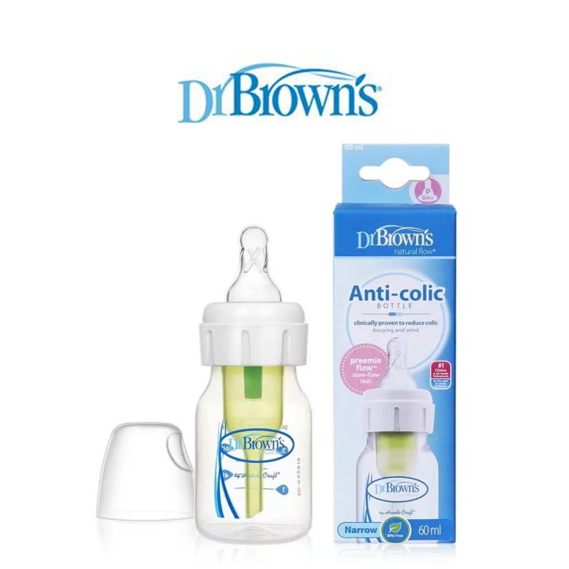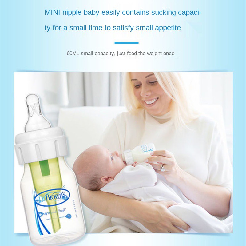 Dr.Brown's newborn standard mouth PP anti-colic milk bottle 60ml [slow flow rate anti-choking milk]