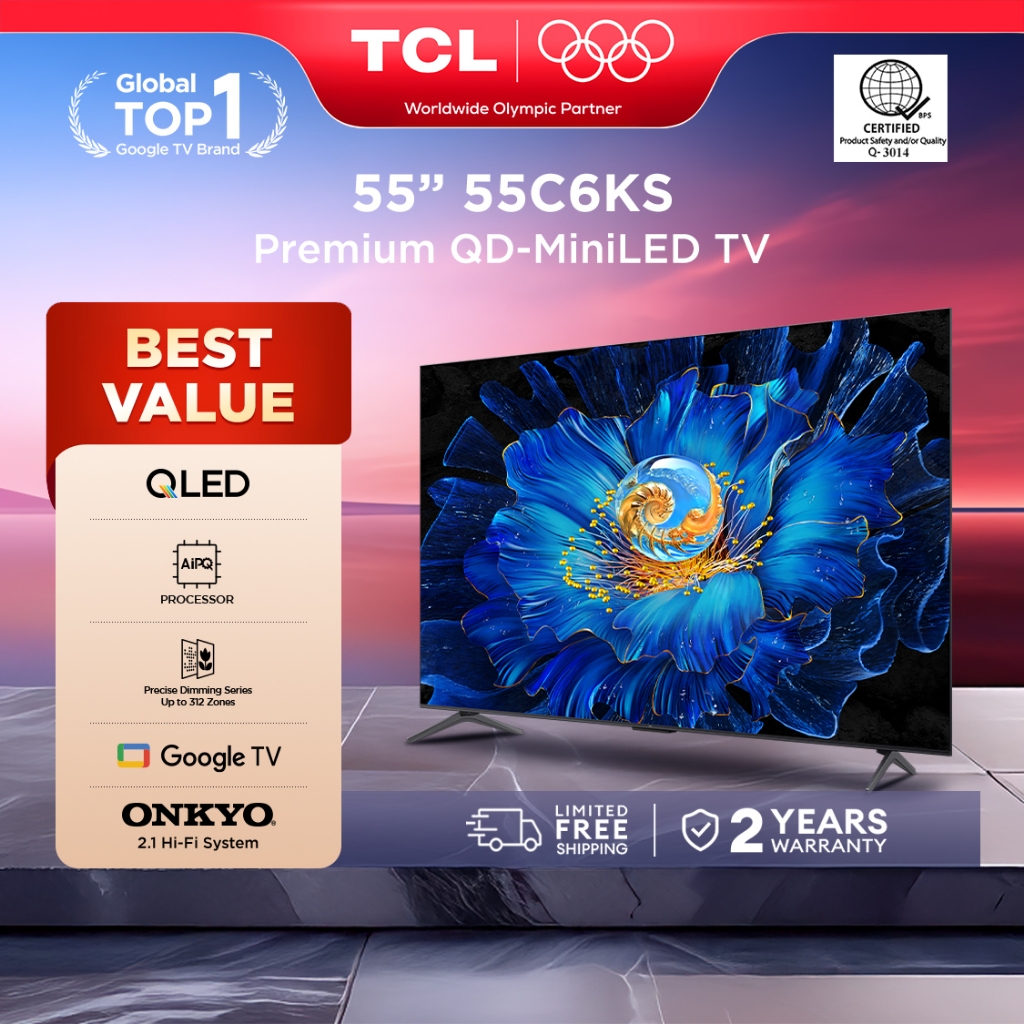 TCL 55 Inch 4K QD-MiniLED TV - 55C6KS AiPQ, Dolby Vision, Onkyo Audio, HDR, Airplay, MEMC, Game Mode