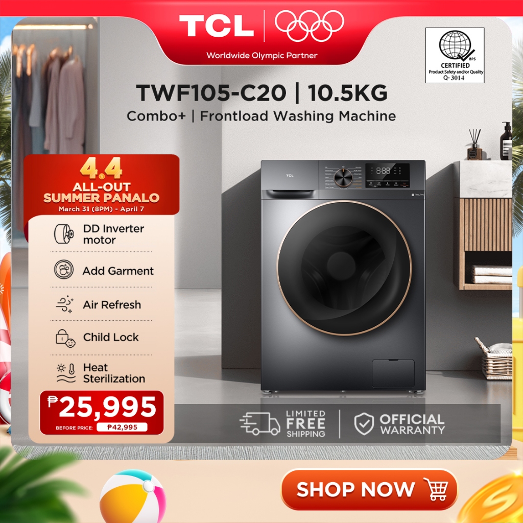 TCL 10.5KG Inverter Front Load Washing Machine (Fast Washing and Drying, 24 Hours Delay) TWF105-C20