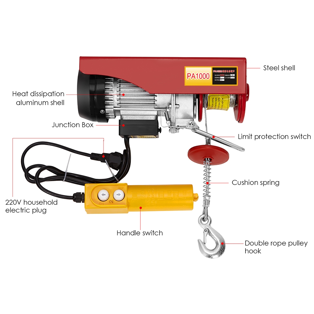 Electric Hoist Wire Rope Length 20M PA1200 Indoor and Outdoor Small Electric Hoist Household Hoistin