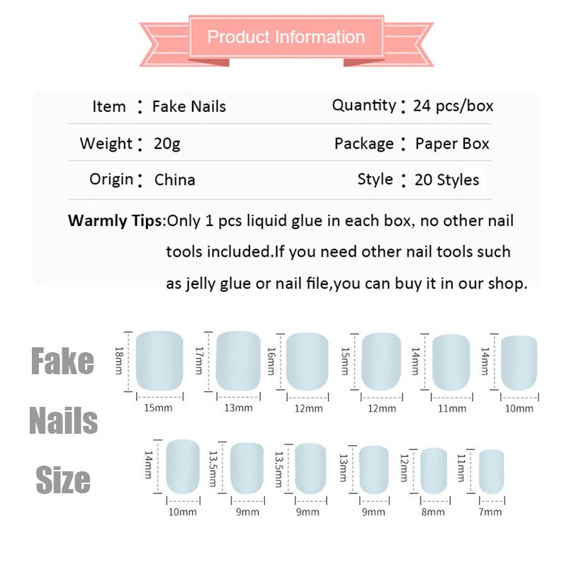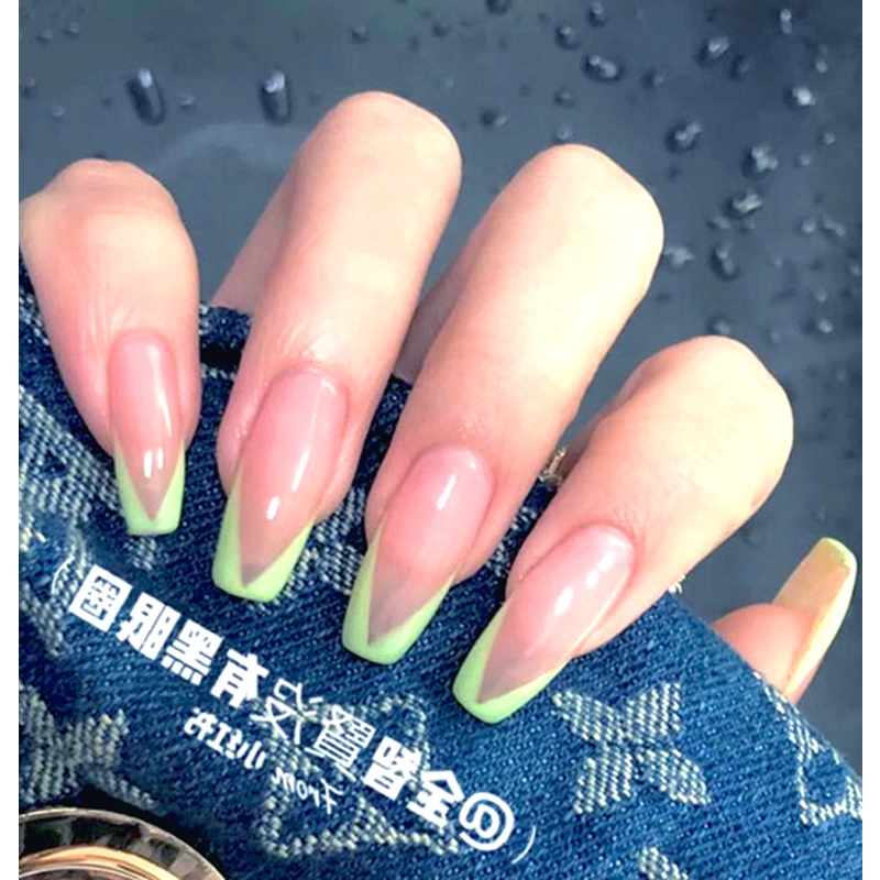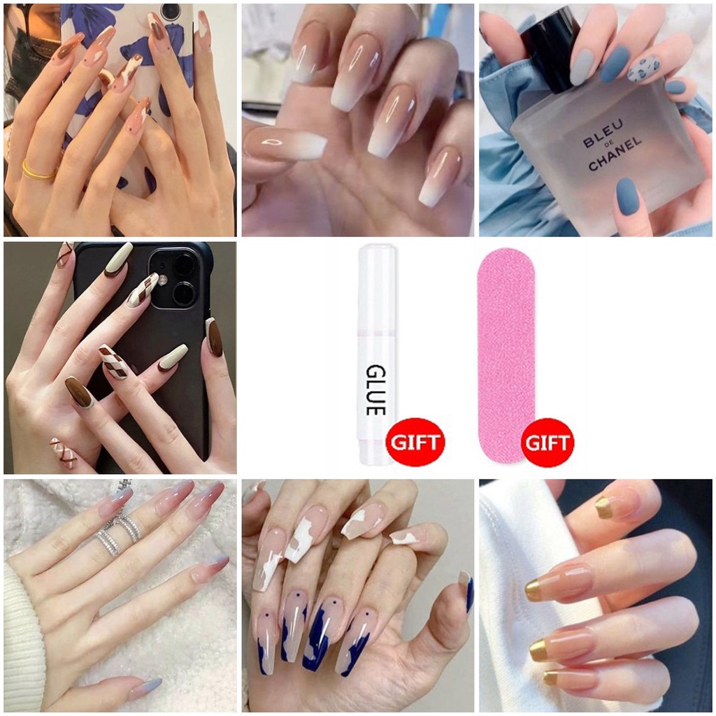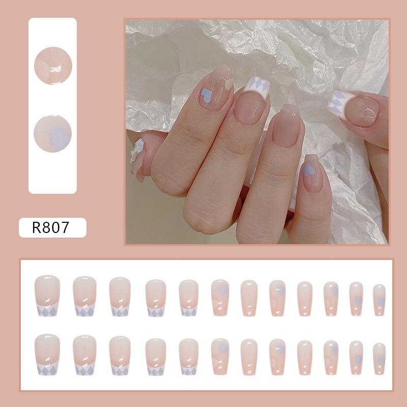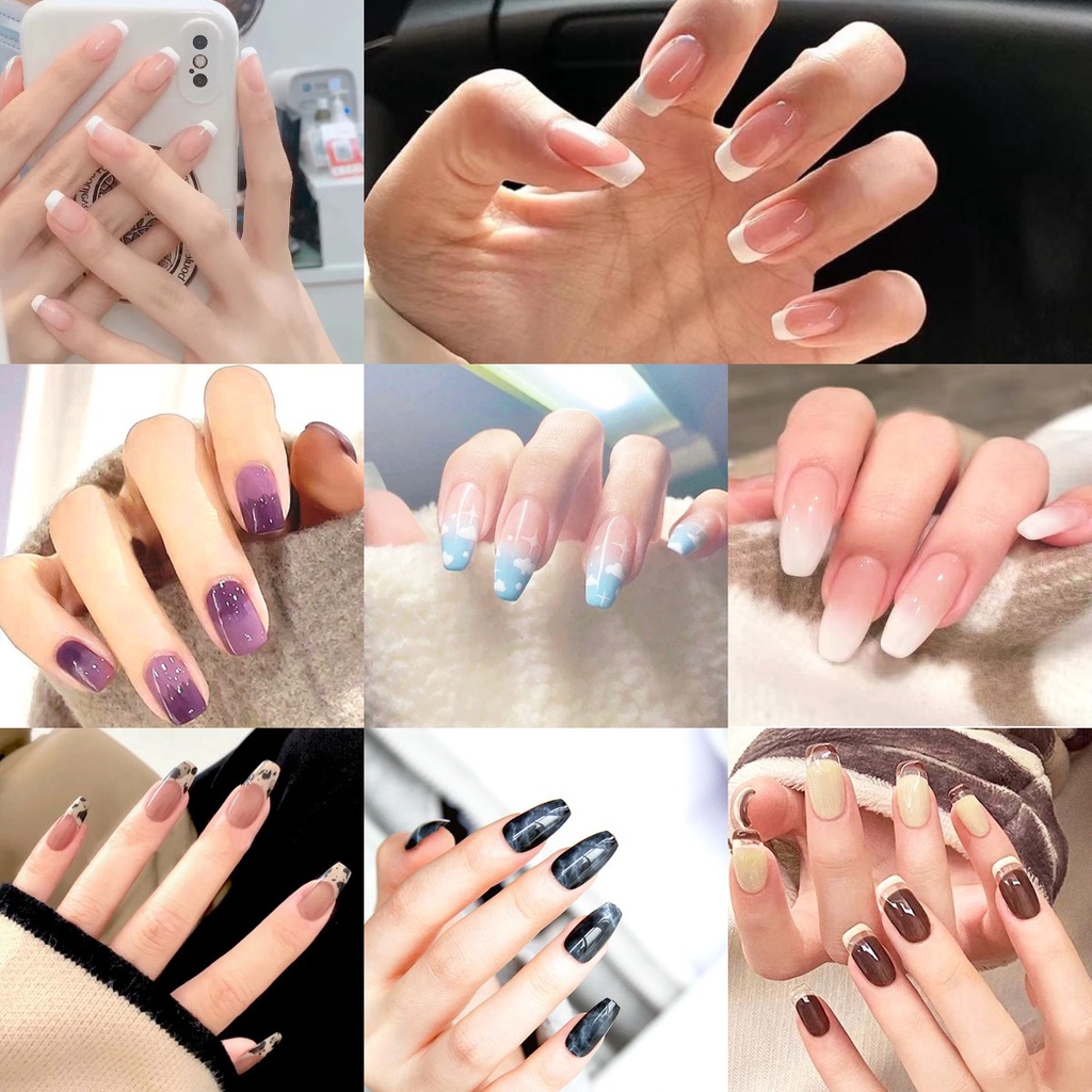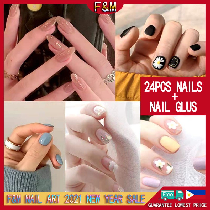[With Glue] 24Pcs/set DIY Fake Nails French Finger Nail Art False Nail Young Style Acrylic Nails COD