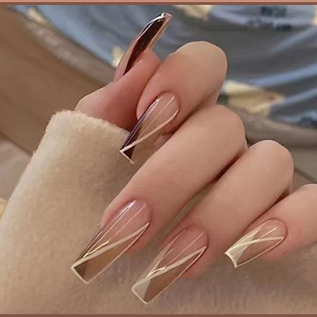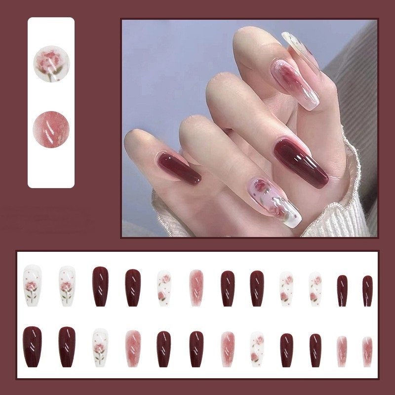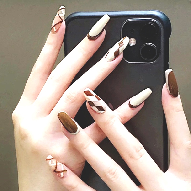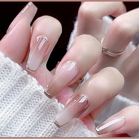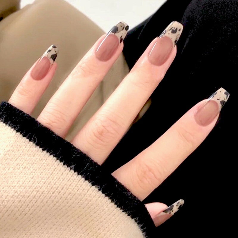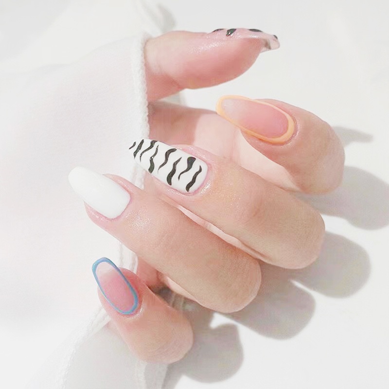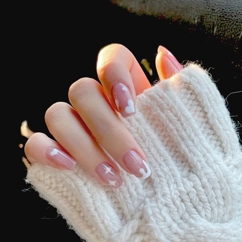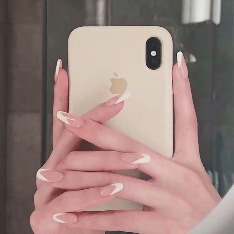 [With Glue] 24Pcs/set DIY Fake Nails French Finger Nail Art False Nail Young Style Acrylic Nails COD