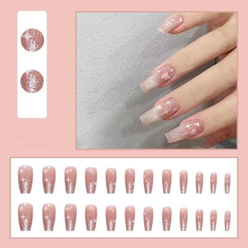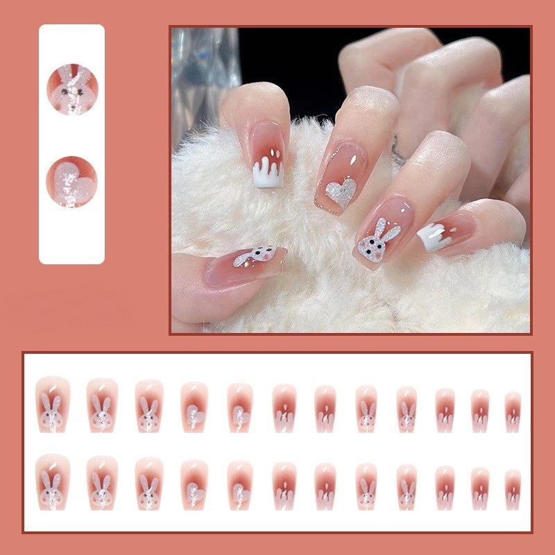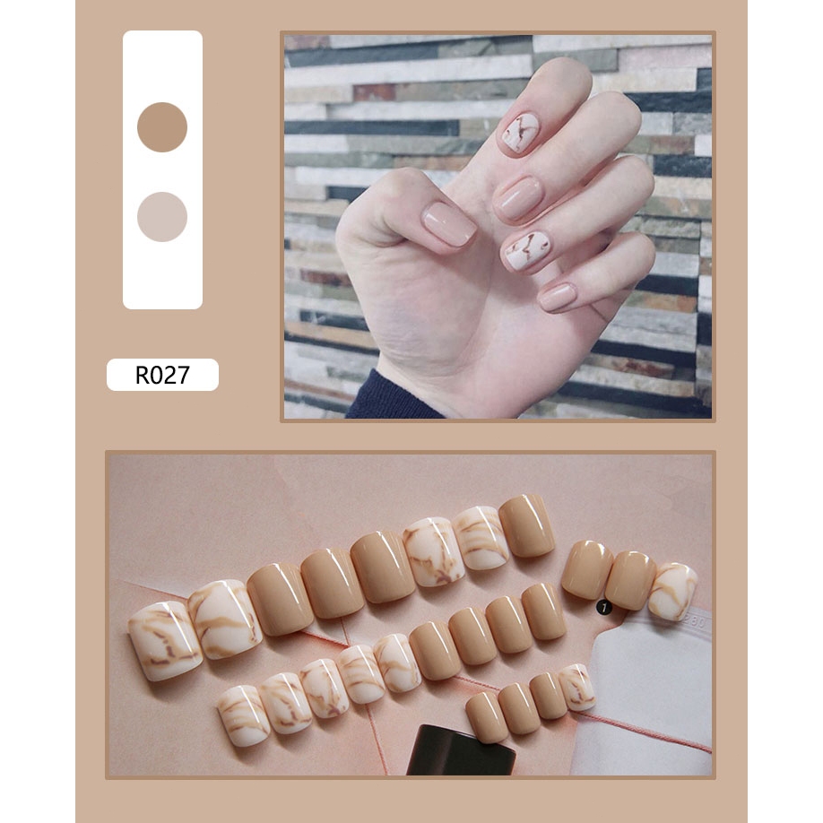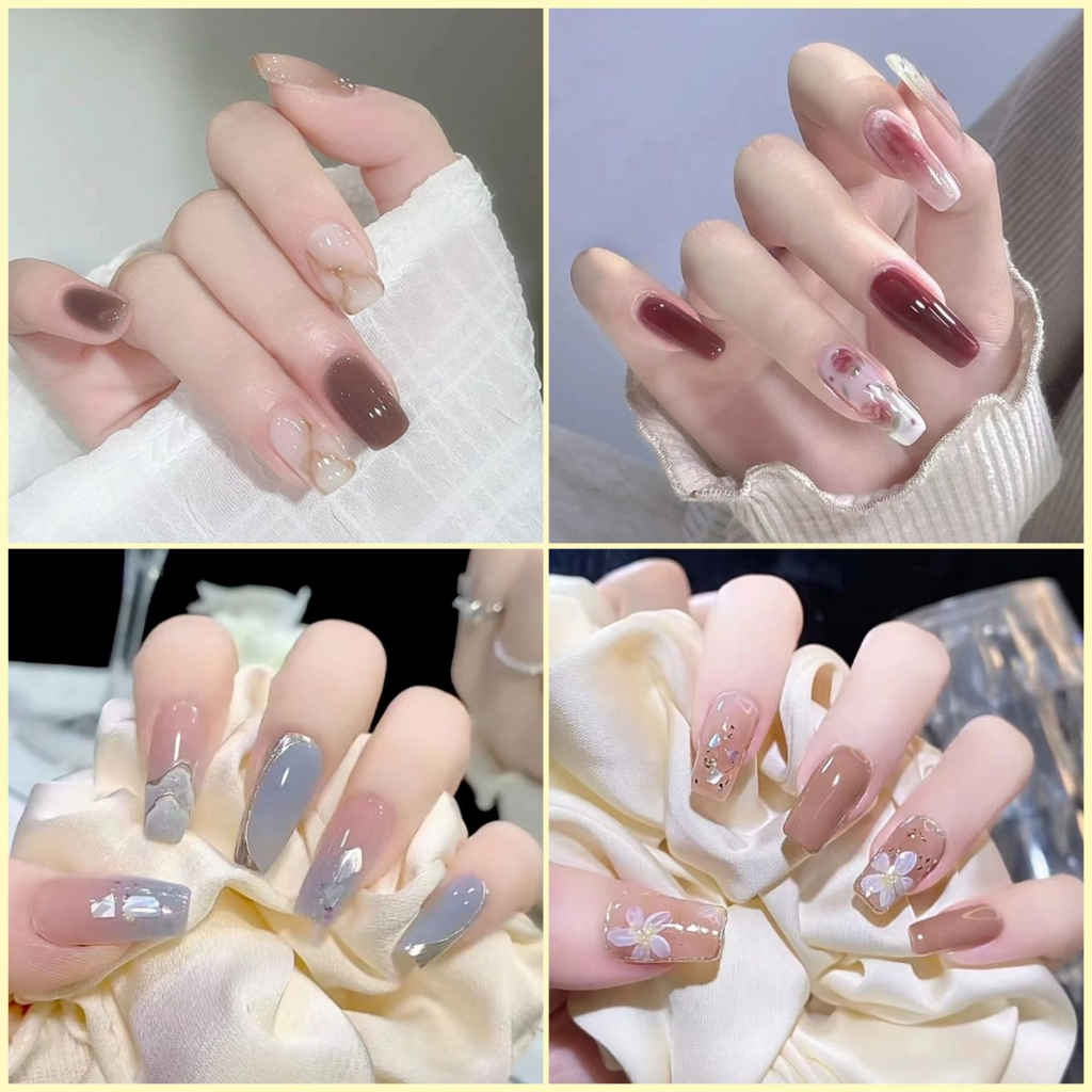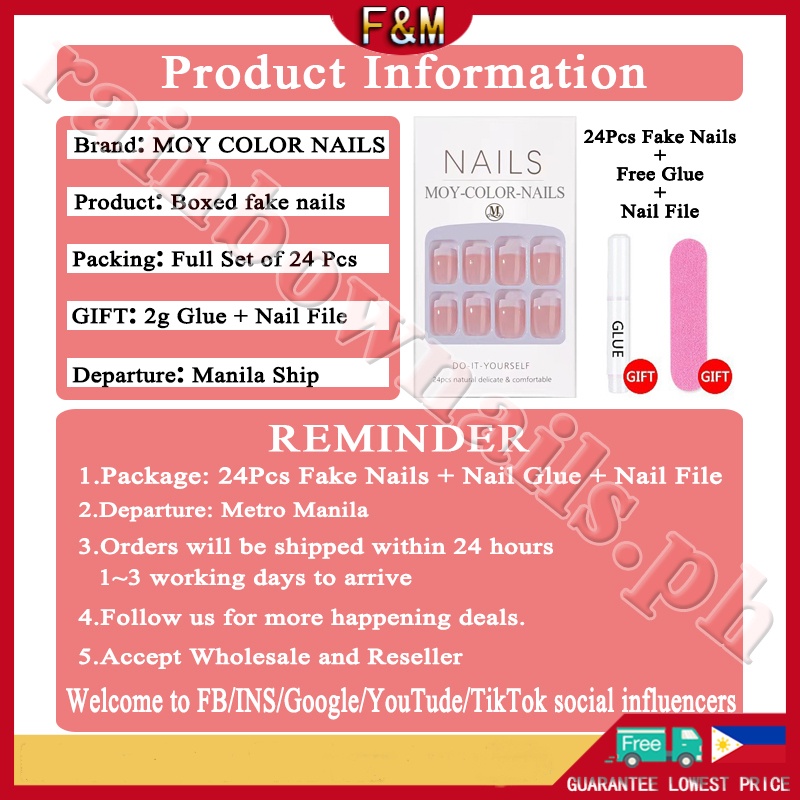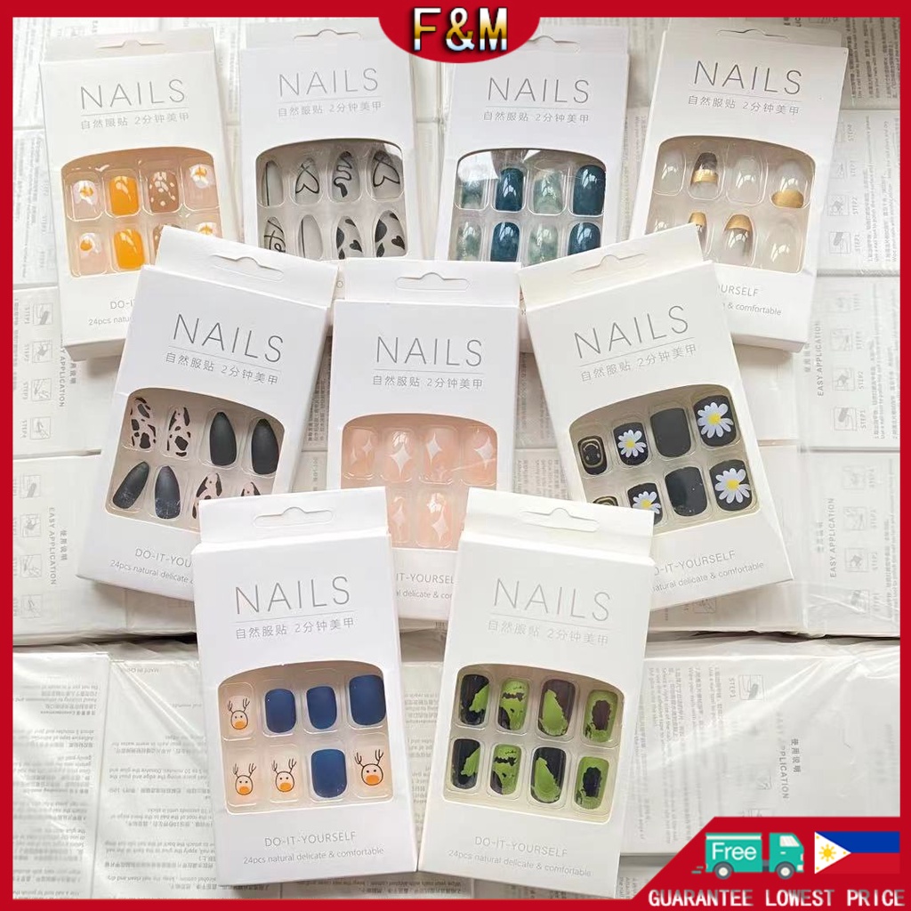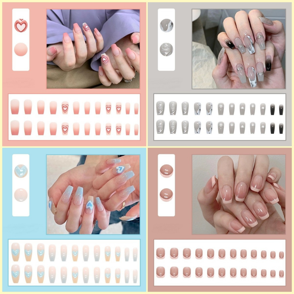 【Free Gift】24Pcs Fake Nails Art Waterproof and Durable Acrylic Nail Design Fake Nails With Glue COD