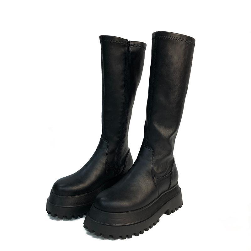 Gothic Style Shoes2021Autumn Stretch Punk Ankle Boots Female Online Influencer Small Boots Thick Bottom Increased by Skinny Boots【3Month3Day After】