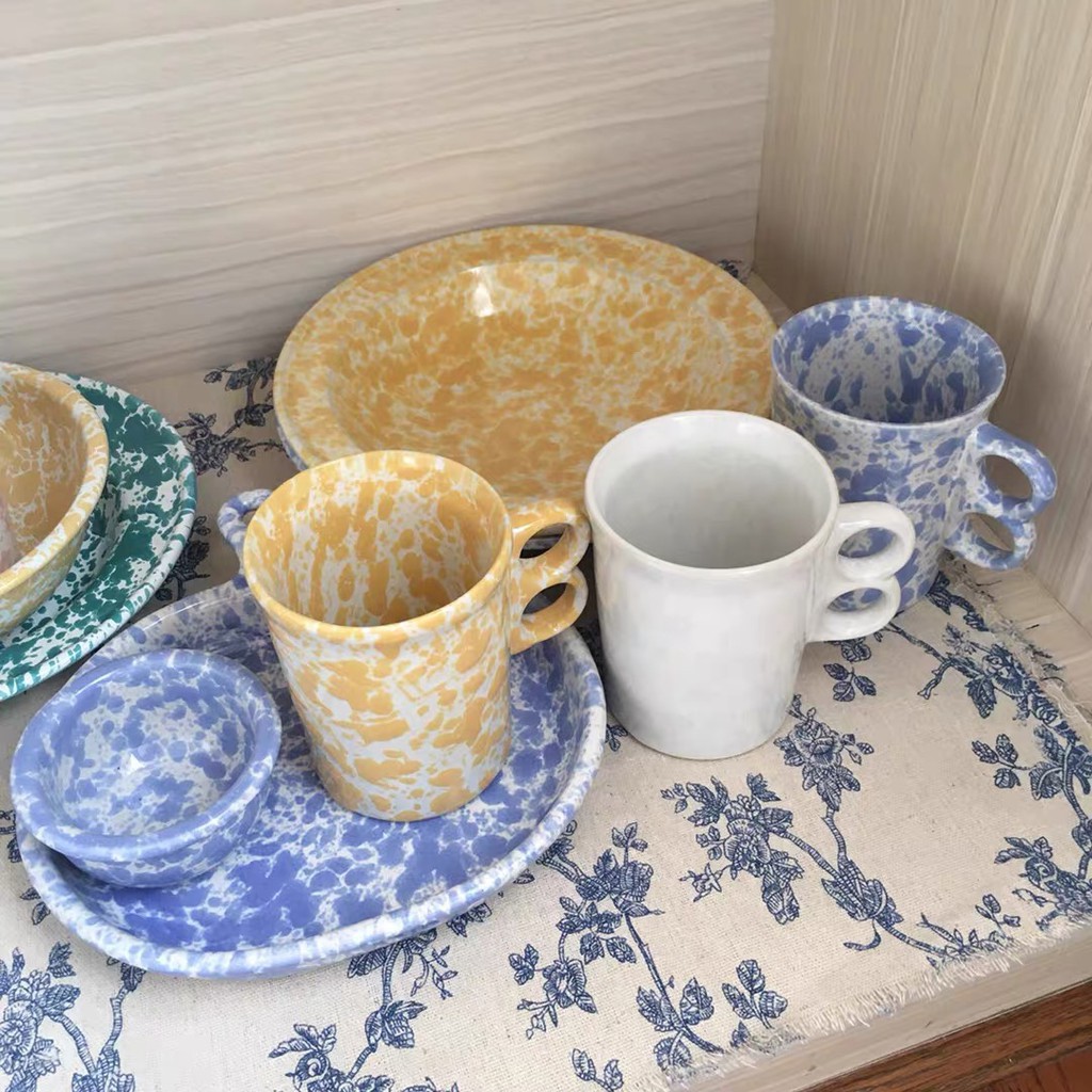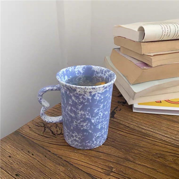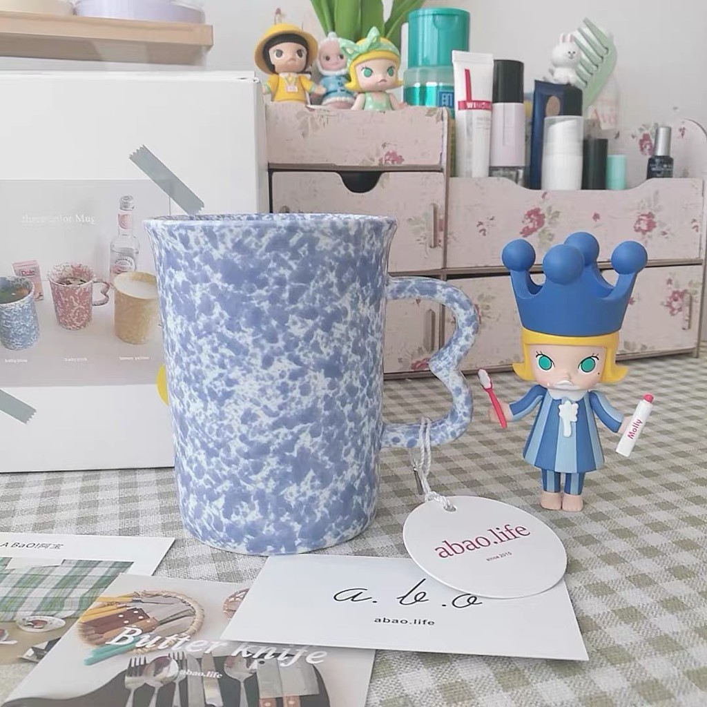 Rika life~ Korea ins retro yellow pink blue splash ink mug girl ceramic water cup coffee cup milk cup