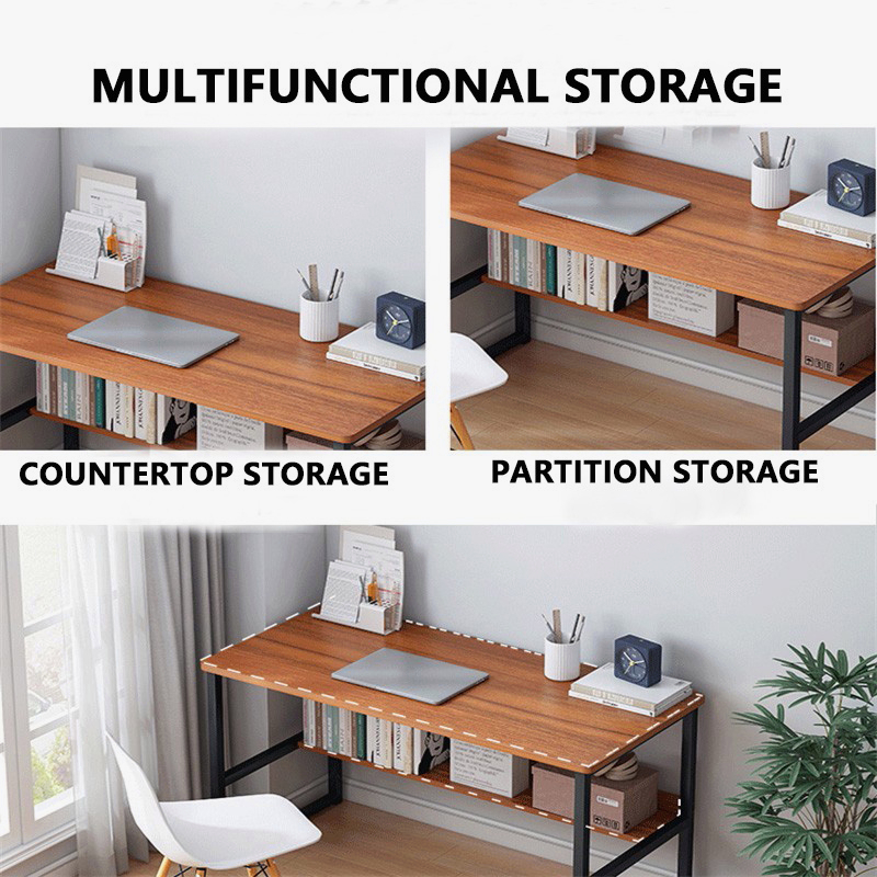 80/100/120CM Tables Office Table Study Table Long Computer Table Double Layer Storable Writing Desk