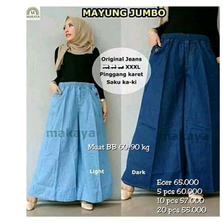 JUMBO MAYUNG JEANS CULOTTS FIT 50-85 High Waist Baggy Jeans