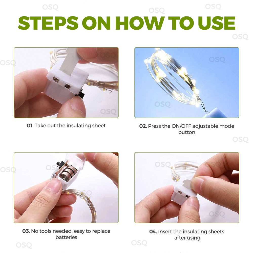 OSQ 1m/2m/3m/4m/5m 3 Modes Battery Operated Copper Wire Fairy String Light For Home Decoration