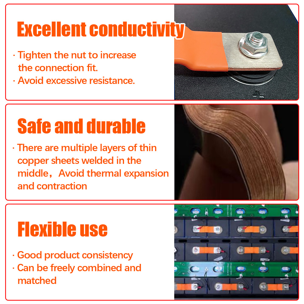 1/3pcs Busbar lithium Battery Flexible Copper Connecter 74mm 3mm 400A for 280Ah 302Ah 310Ah 320Ah Lifepo4 Battery Use