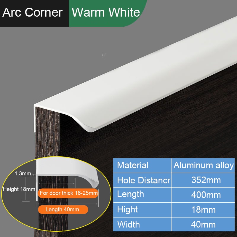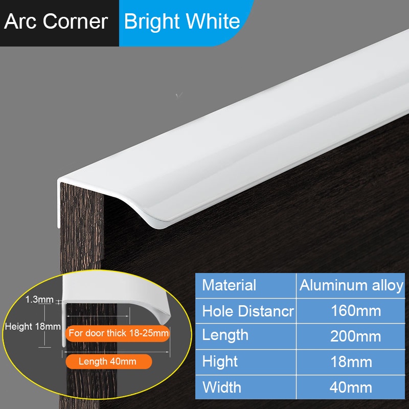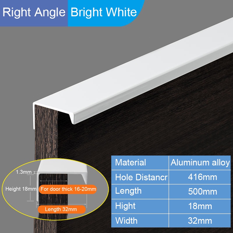 White Hidden Cabinet Pulls Drawer Knobs 80mm 120mm 150mm 200mm 300mm 400mm 500mm Long Furniture Handles Aluminum Alloy Kitchen Cupboard Door Hardware