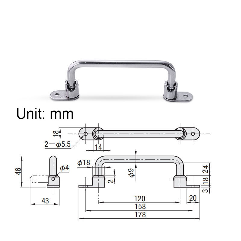 138mm 158mm 180mm 218mm 304 Stainless steel heavy duty folding handle External installed industrial equipment handle box spring handle