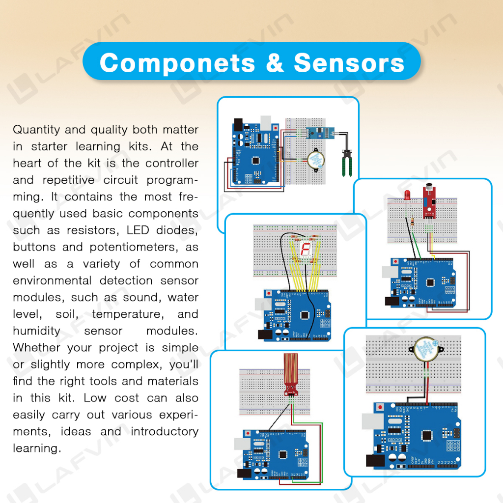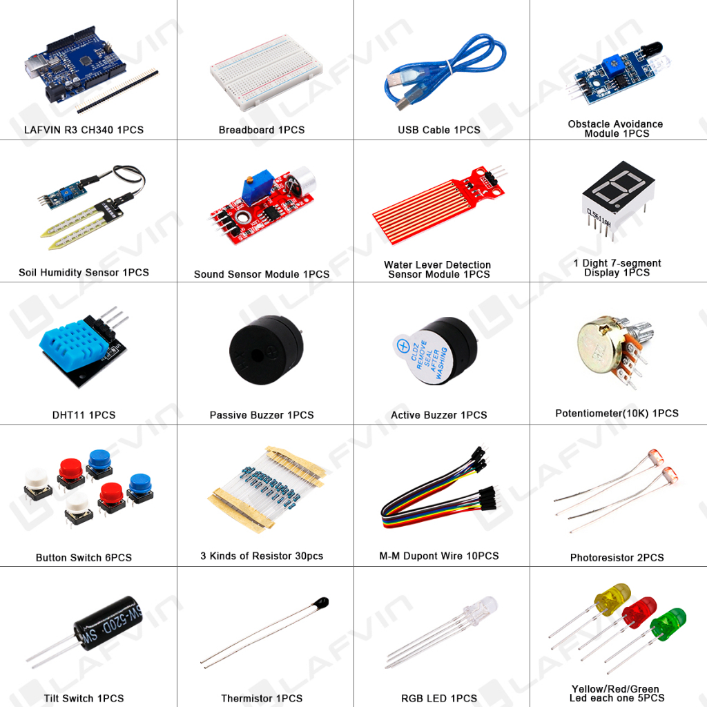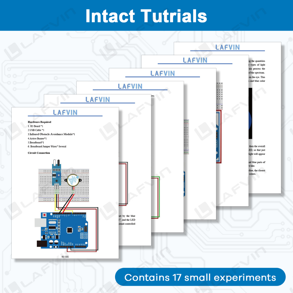 LAFVIN UNO R3 Basic Starter Kit for Arduino with Tutorial/Code, Breadboard, Jumper Wire, Obstacle Avoidance Module