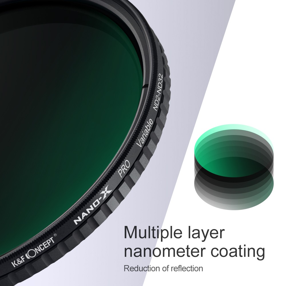 K&F ND2-32 Fader ND Filter Neutral Density Variable Filter ND2 to ND32 5 Stop adjust No X cross