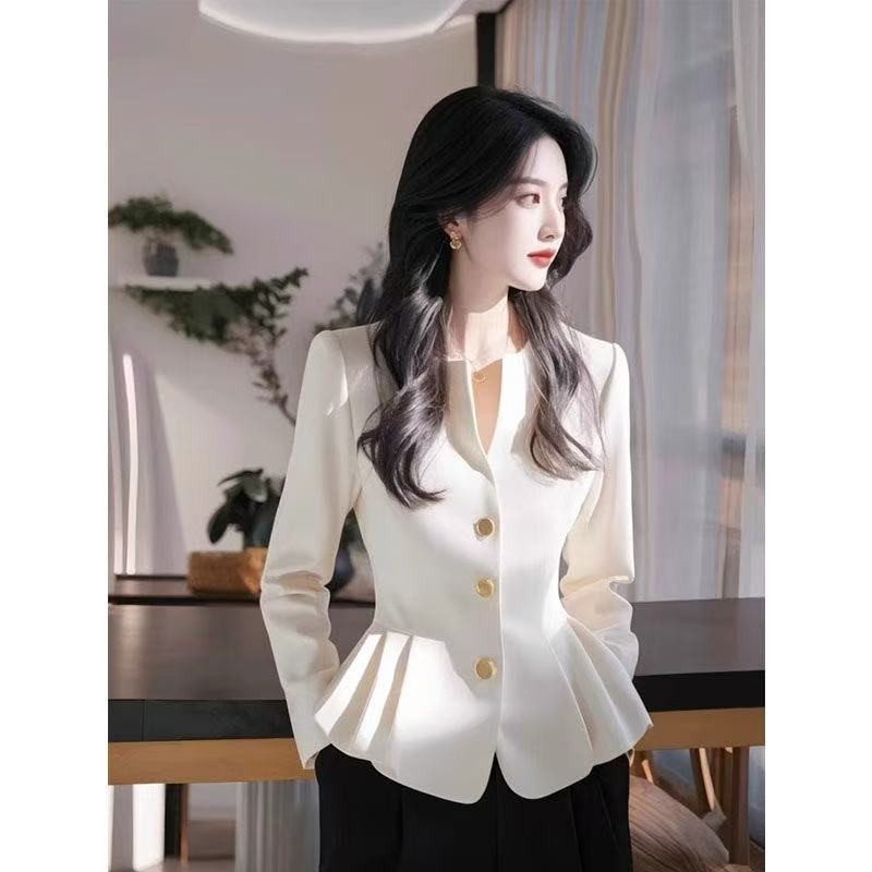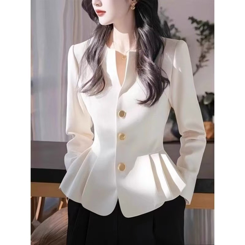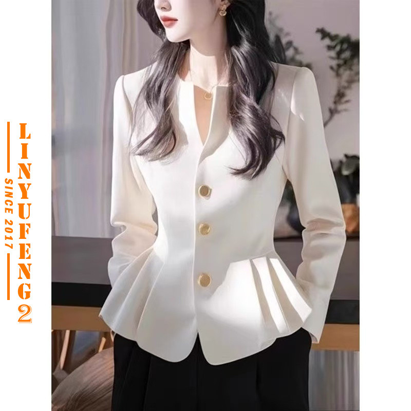 Formal Blouse for Women Korean Style White Office Wear Slim Waist Pleated Long Sleeve Elegant Classy Ladies Shirt Top