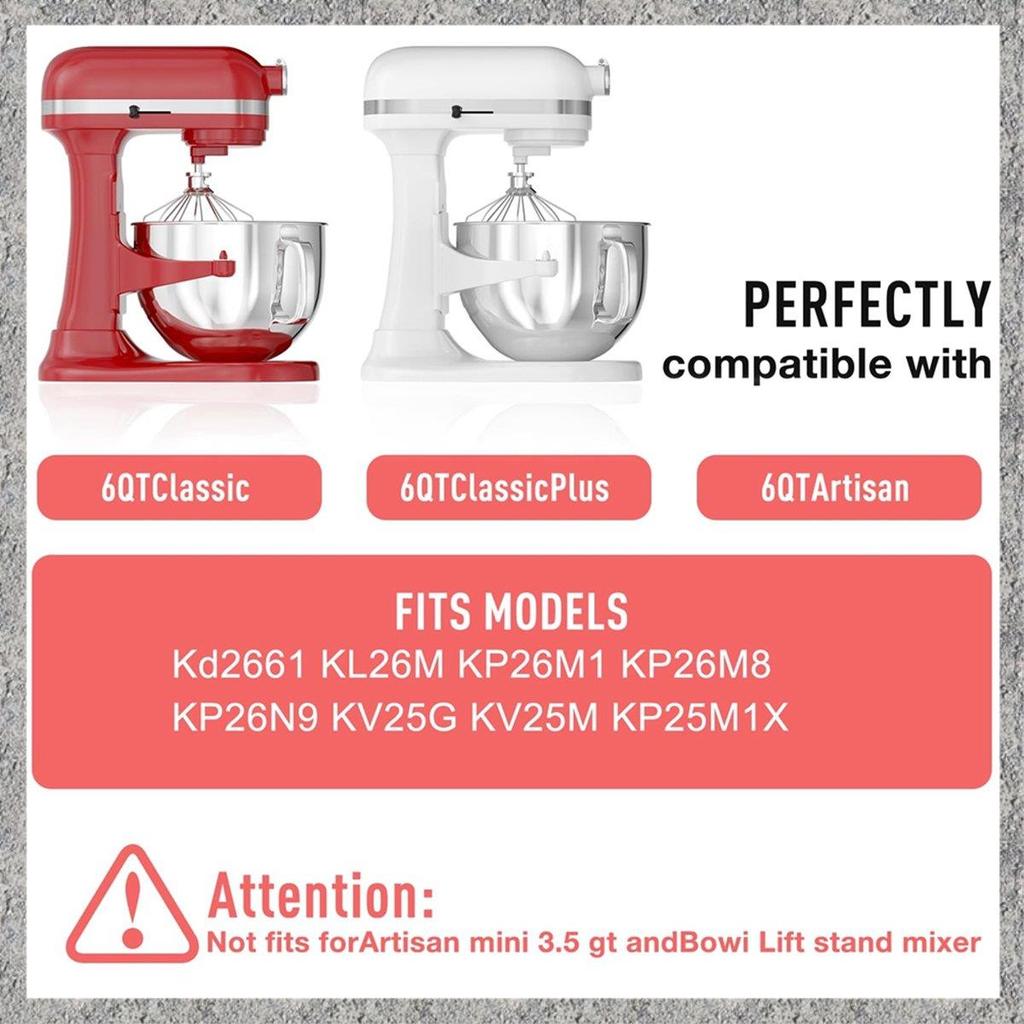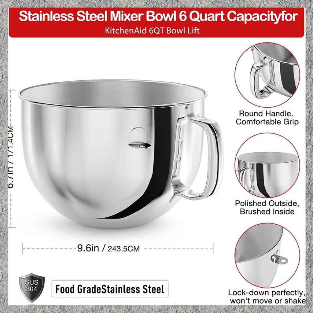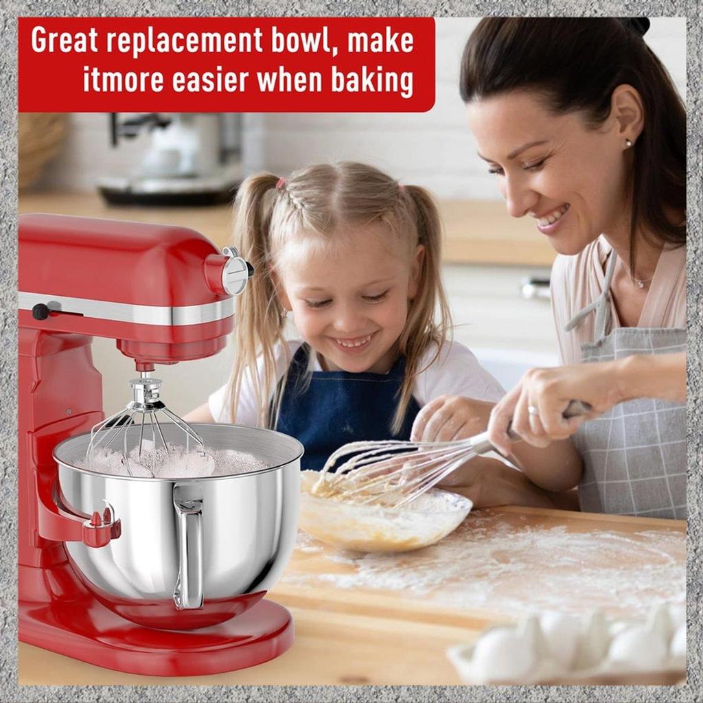 6QT Stainless Steel Mixer Bowl For Stand Mixers, Kitchen Aid Mixing Bowl For 6QT Tilt-Head Mixer With Handle