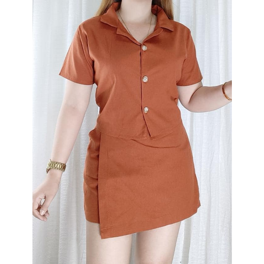 Cotton Linen Polo Blouse Skort Terno