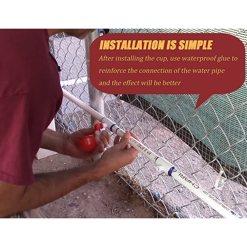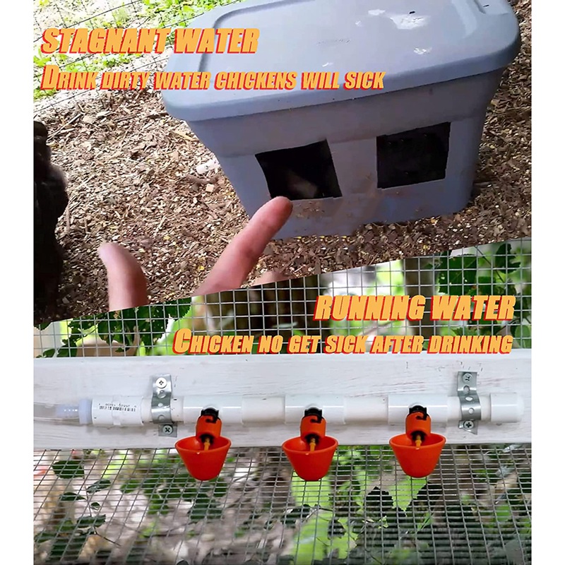 Chicken Waterer Cups, Chicken Waterer Feeder Tee Fittings, Automatic Chicken Waterer for Chicken Ducks Quail 6Pcs