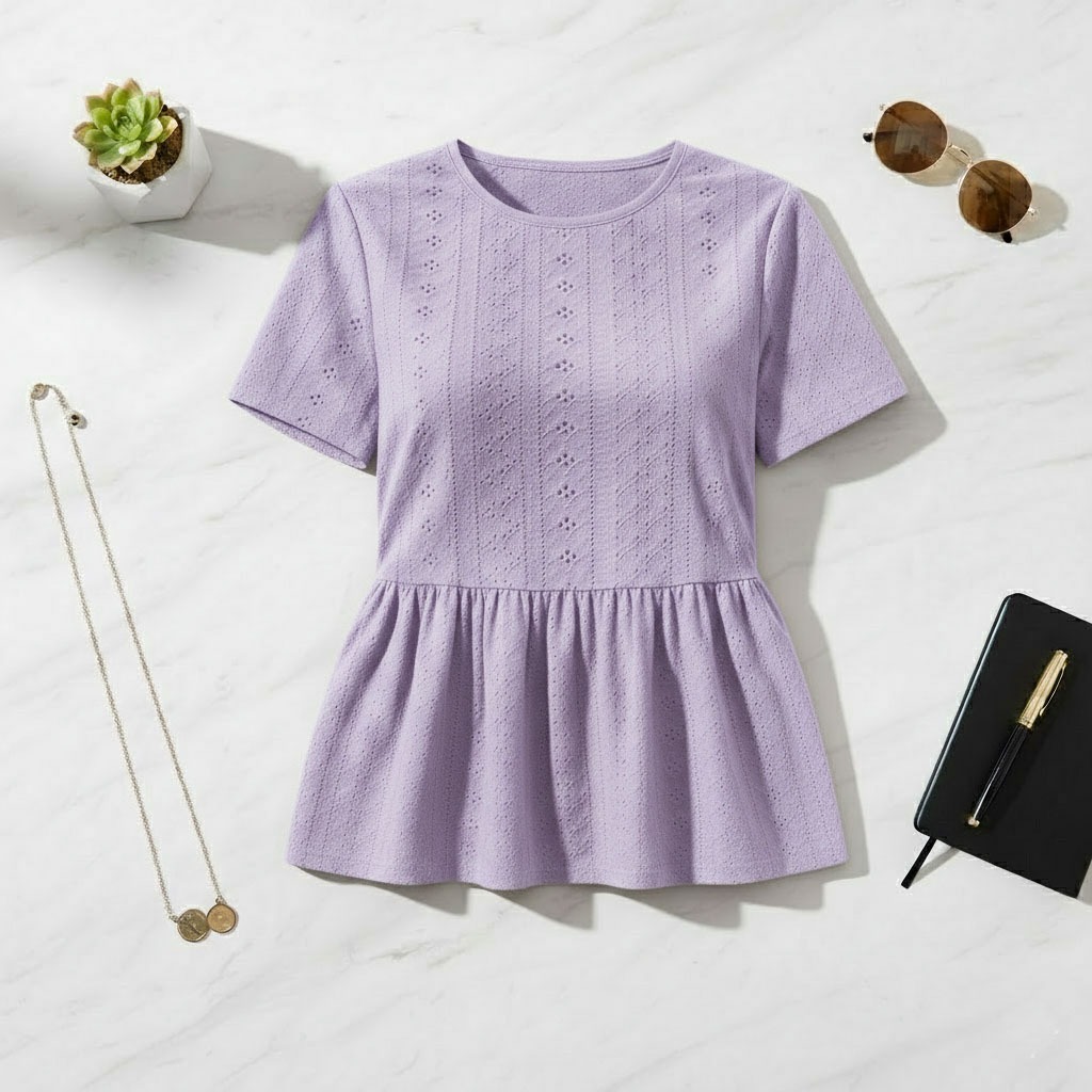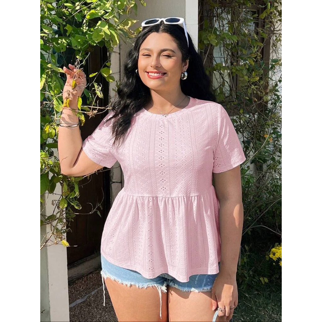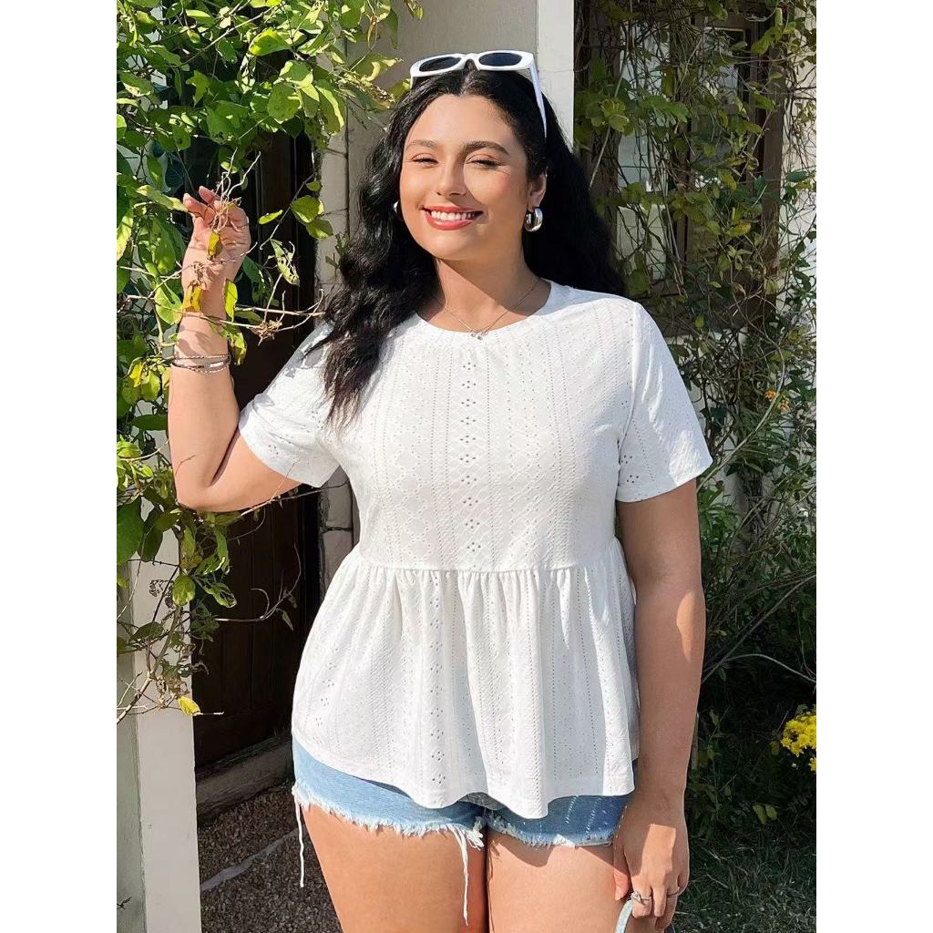 Kathryn Eyelet Embroidery Peplum Top XS–2XL Daily Wear 71007#