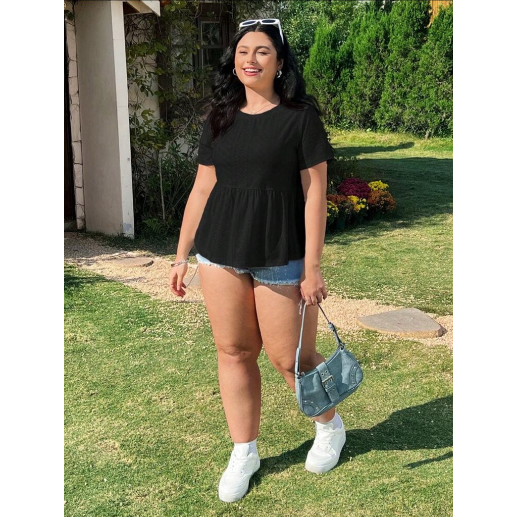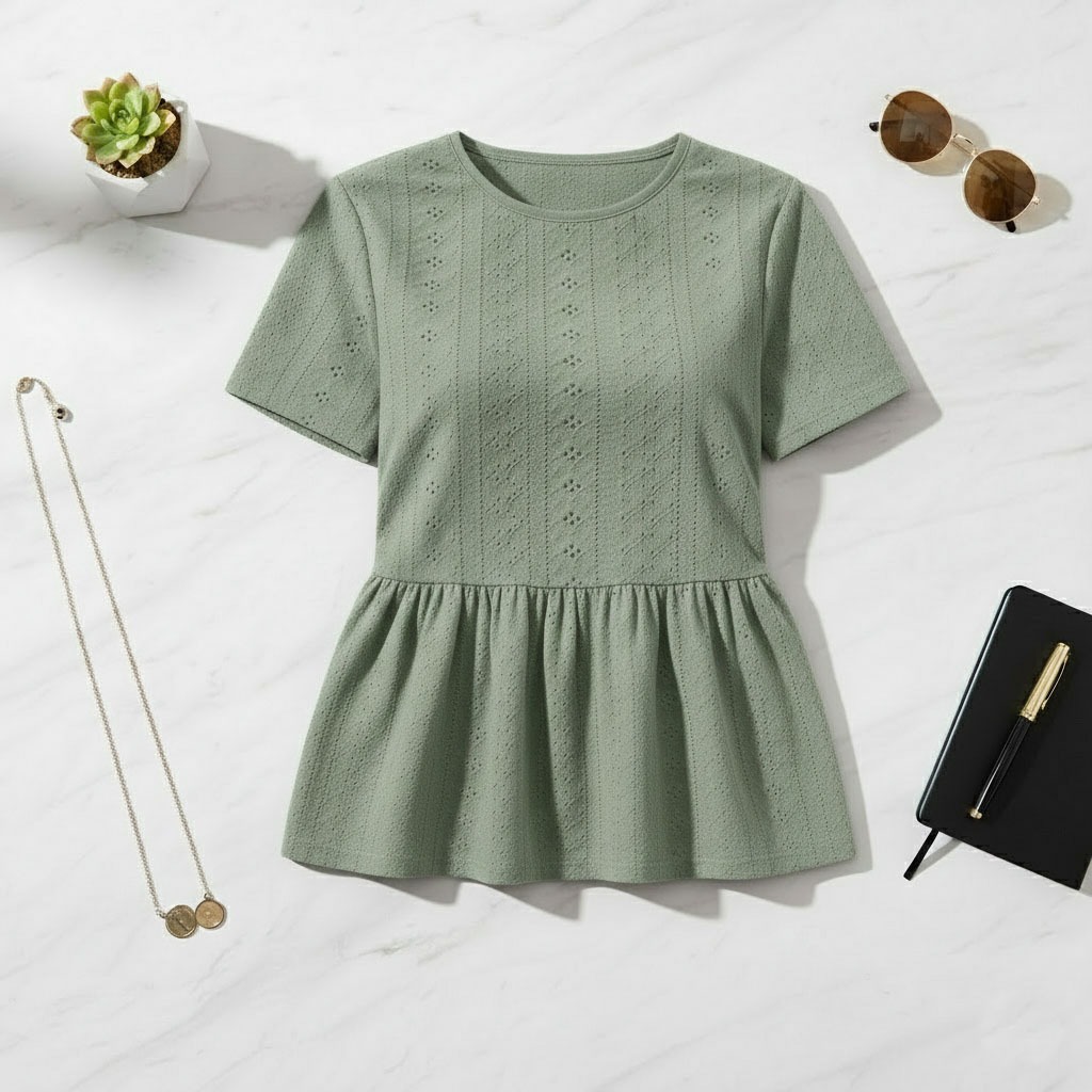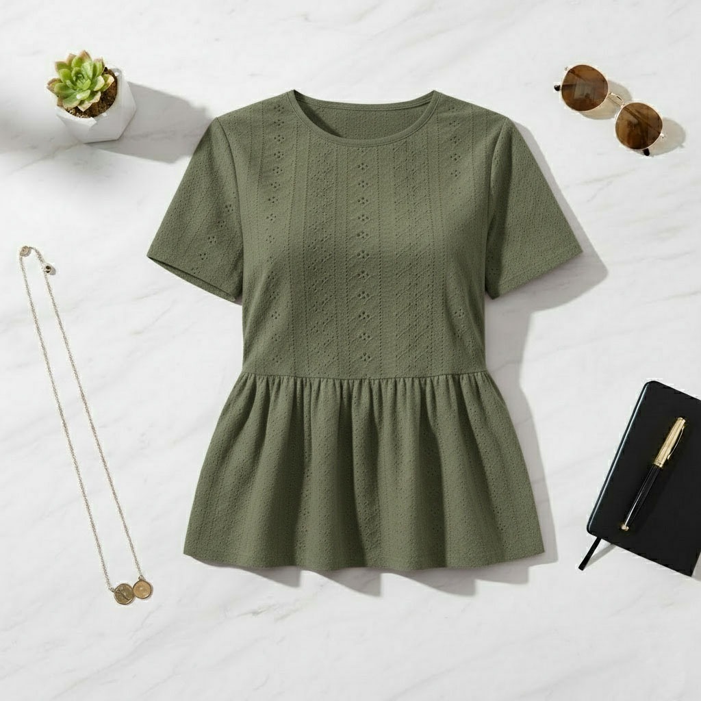 Kathryn Eyelet Embroidery Peplum Top XS–2XL Daily Wear 71007#