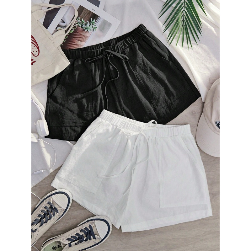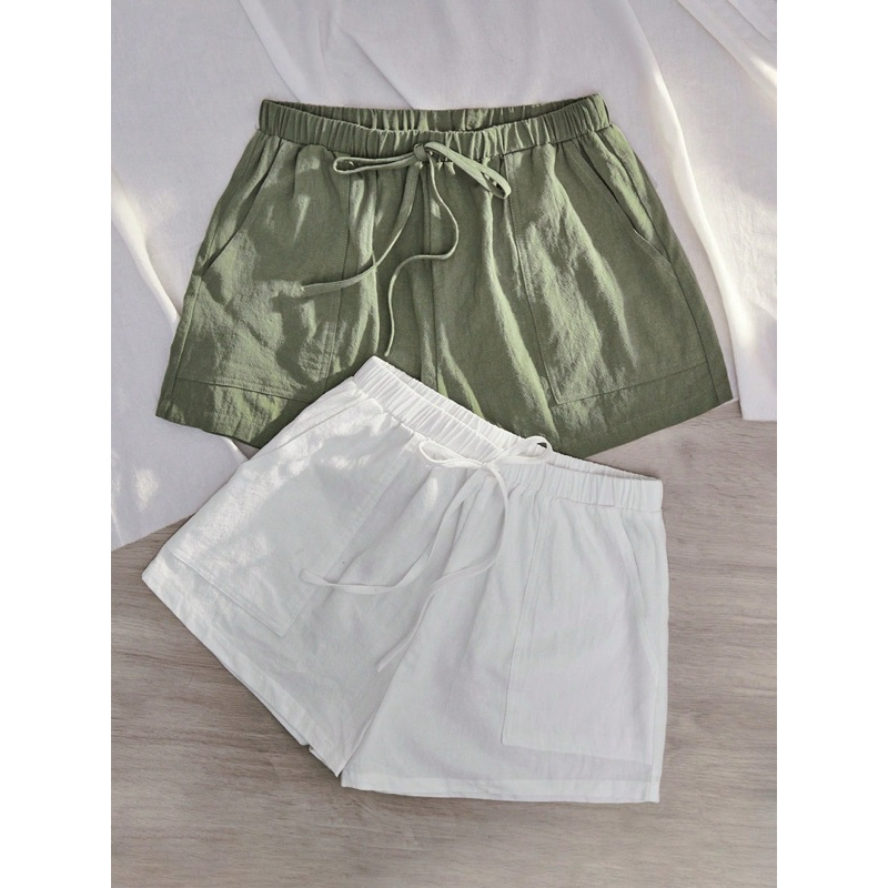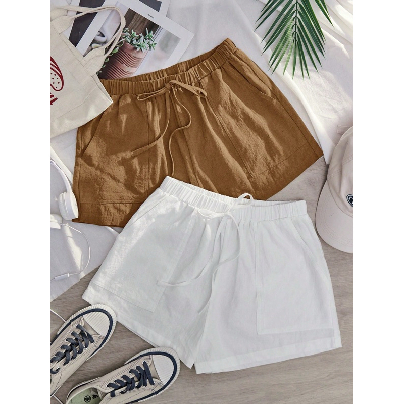 Kathryn Pocket Front Waist Casual Shorts for Woman (Cotton Linen Fabric) 13074 #