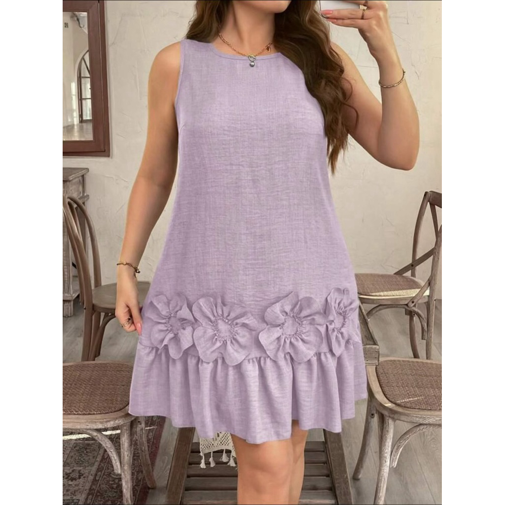 Kathryn Plus Size Floral Ruffle Hem Straight Dress 32076#