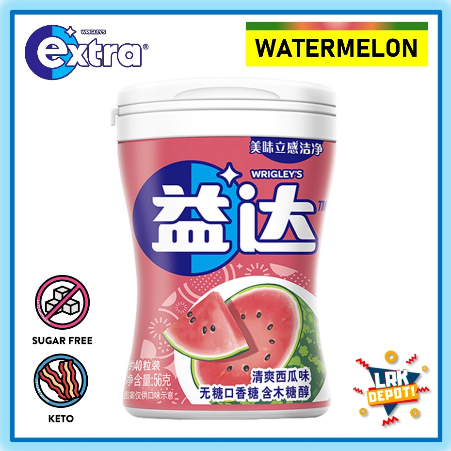 Wrigley's Extra Yida Chewing Gum (Watermelon Flavor) Sugar Free Xylitol Halal Vegan Bubblegum - 56 g