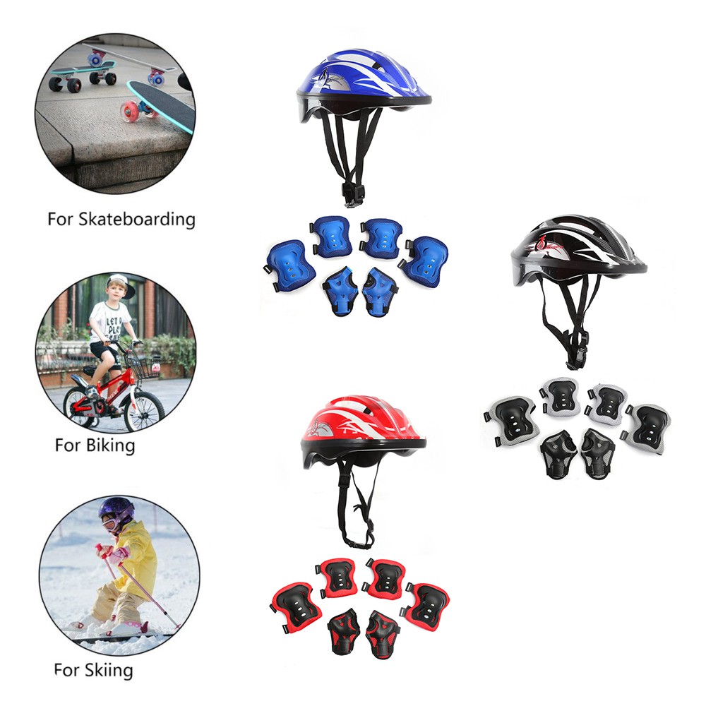 7PCS Children's Wrist Elbow Pads and Knee Pads Helmet Protective Equipment Sports Bike Protector