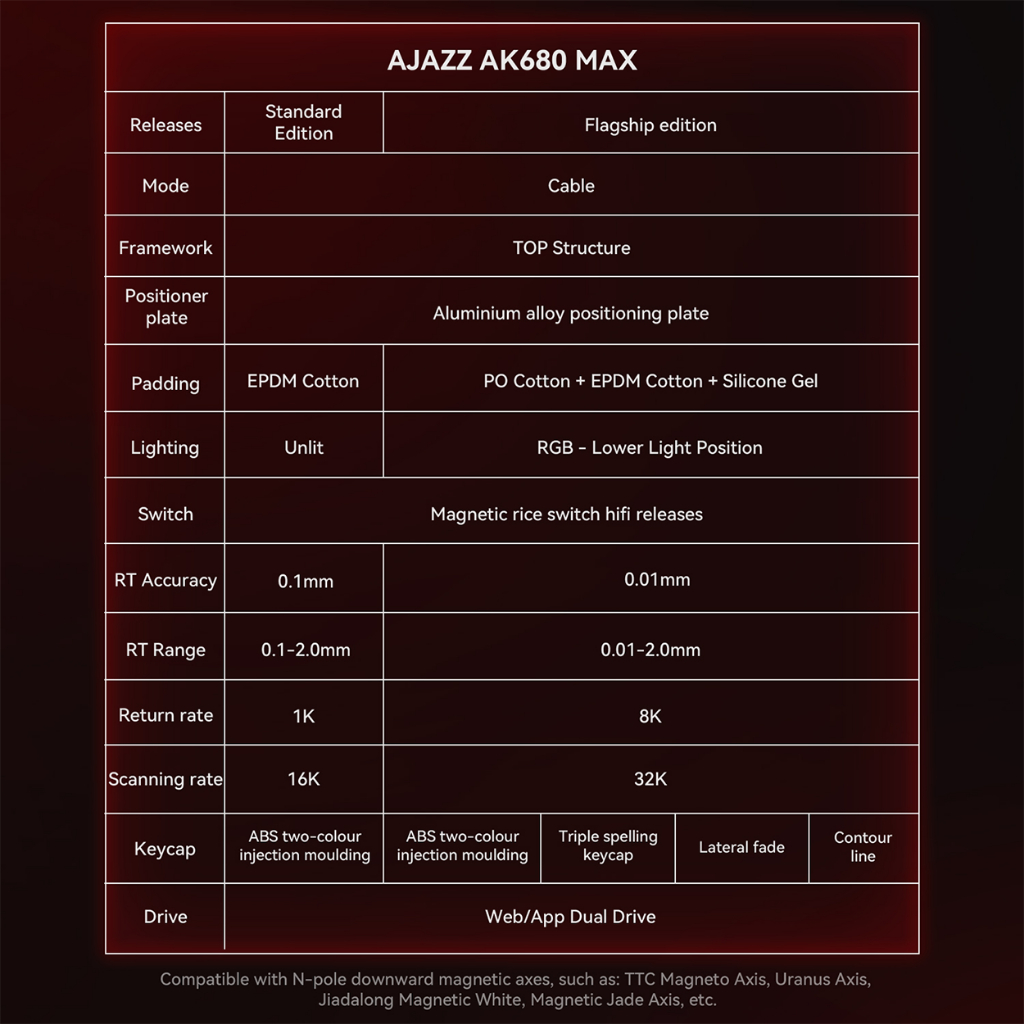 Ajazz AK680 Max 68% Wired Hot-Swappable Top-mounted Magnetic Rice Switch Mechanical Gaming Keyboard