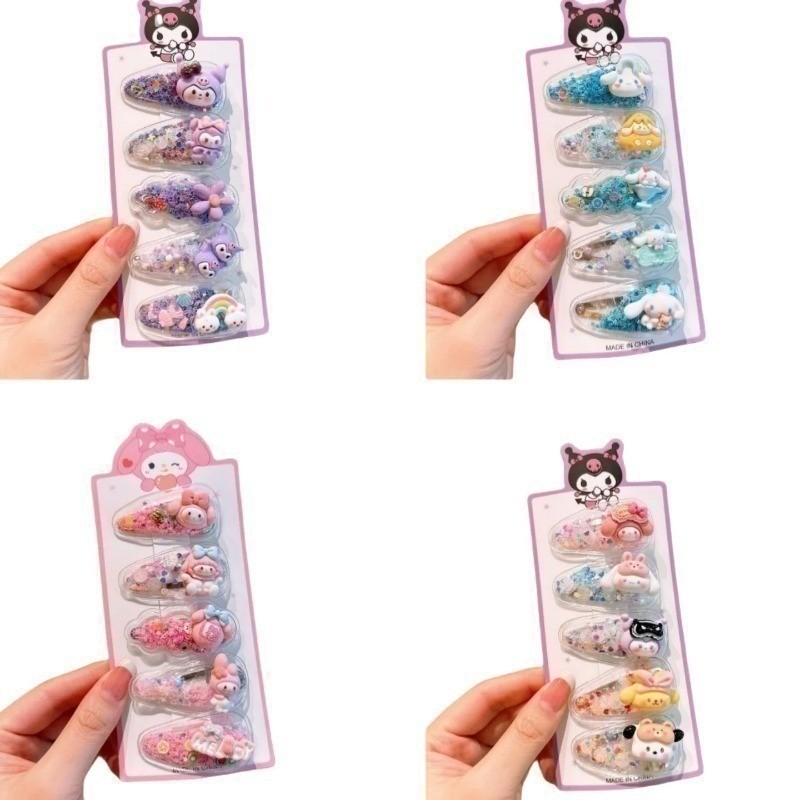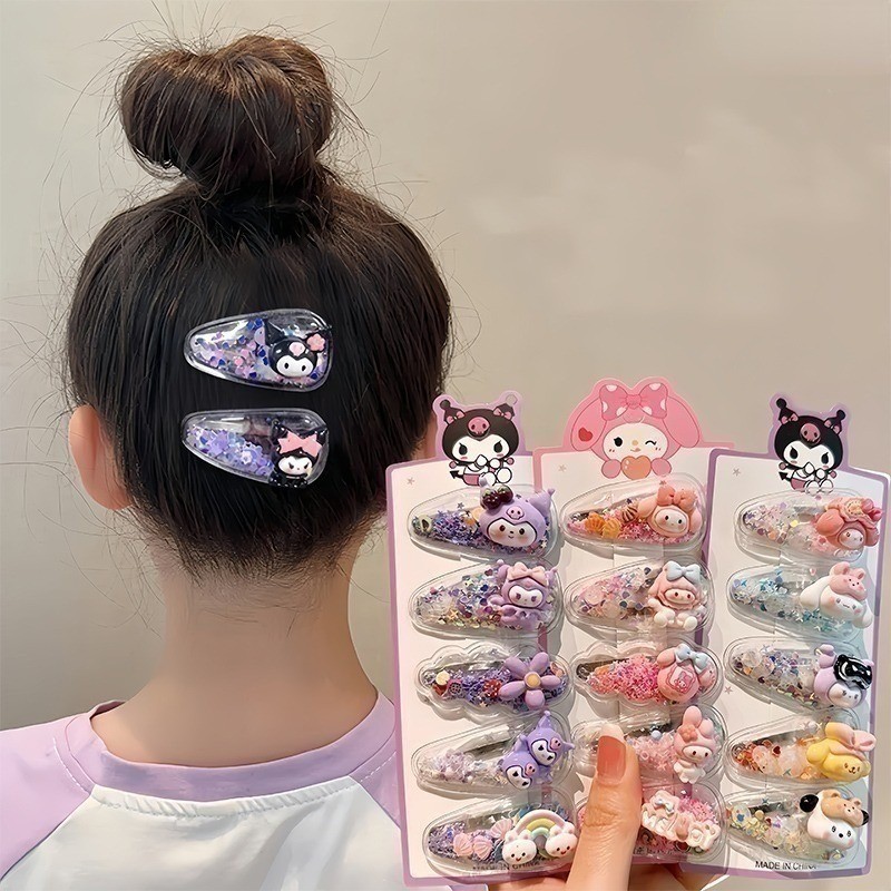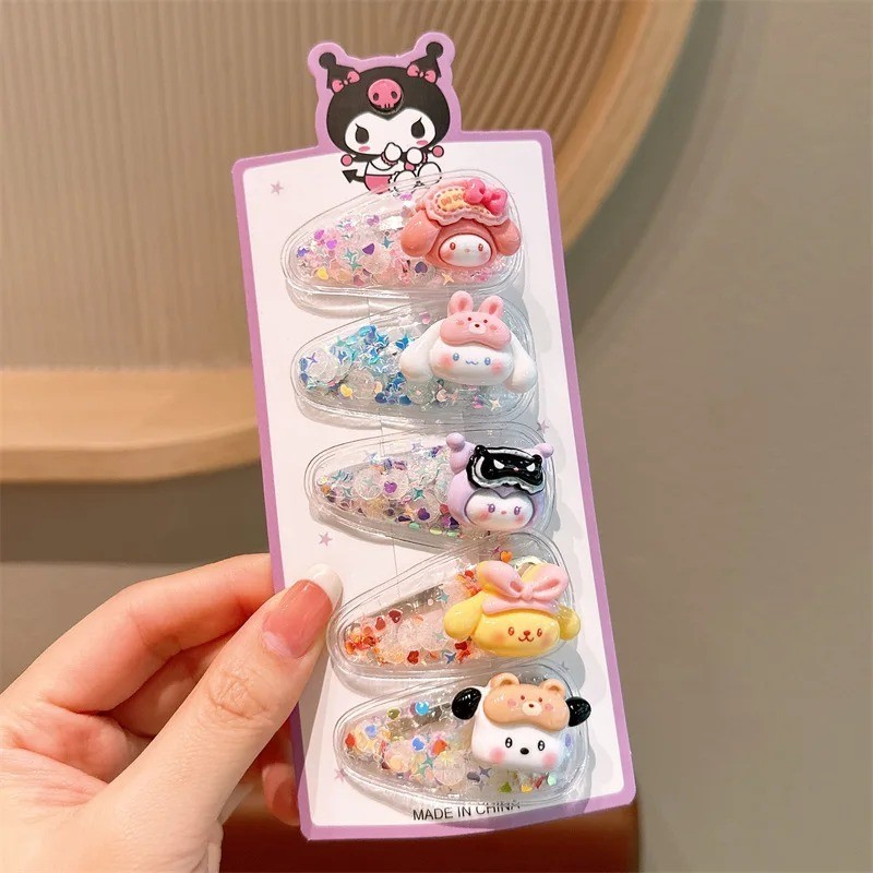 5Pcs Kawaii Anime Hair Clip Cute Sweet Kuromi Melody Cartoon Accessories Lovely Hair Suit Gifts for Girls