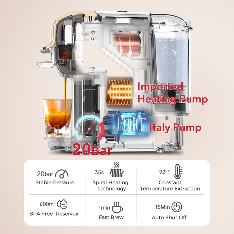 LAHOME Smart Capsule Coffee Maker Machine 6 in 1 Espresso Nespresso Dolce Gusto Ground ESE Pod K-CUP