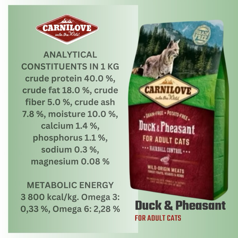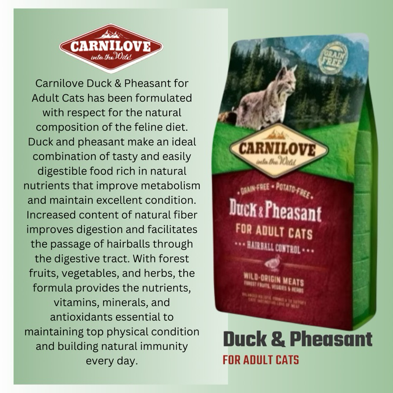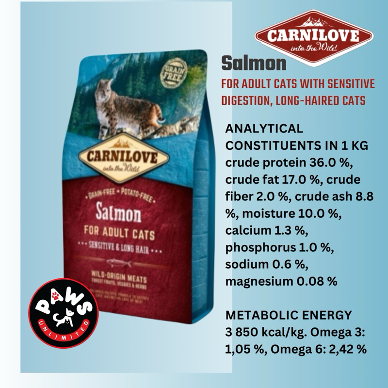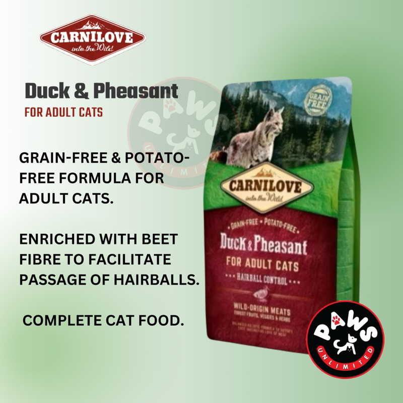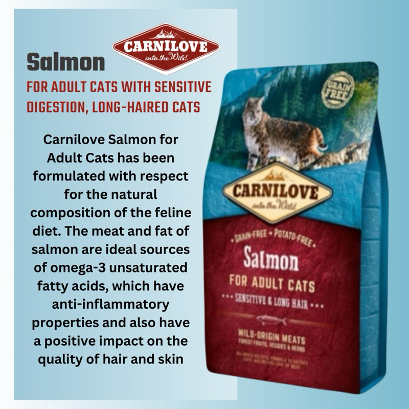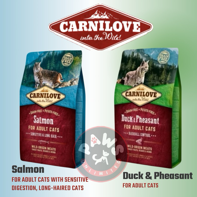 Carnilove Cat Food -Salmon (Sensitive & Long Hair) or Duck & Pheasant (Hairball Control) 2kg