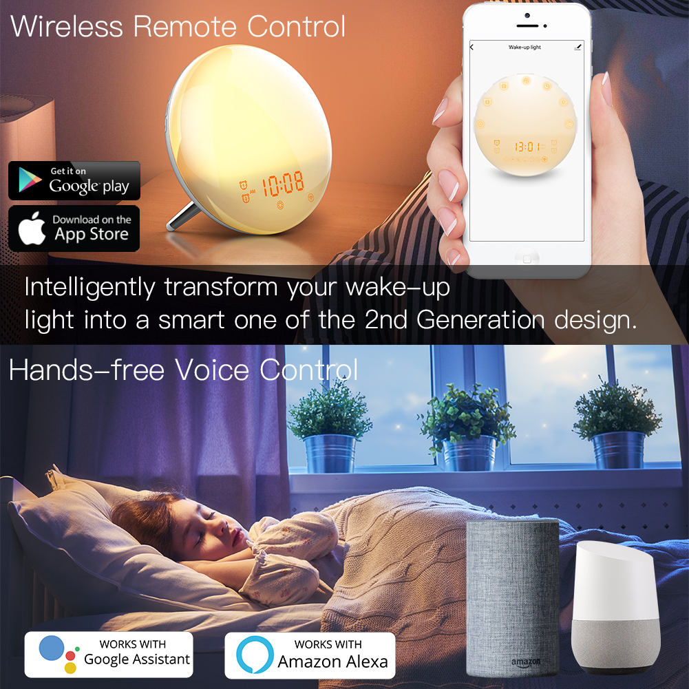 MOES WiFi Wake Up Smart Light Alarm Clock with 7 Colors Sunrise Sunset Simulation Tuya APP Control Works with Alexa Google Home