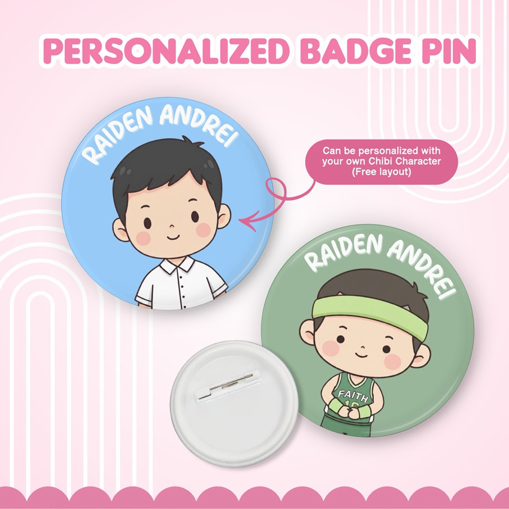 PERSONALIZED CHIBI BADGE PIN | BUTTON PIN | FREE LAYOUT