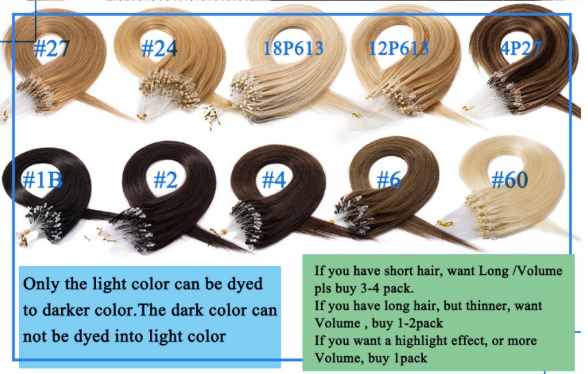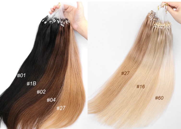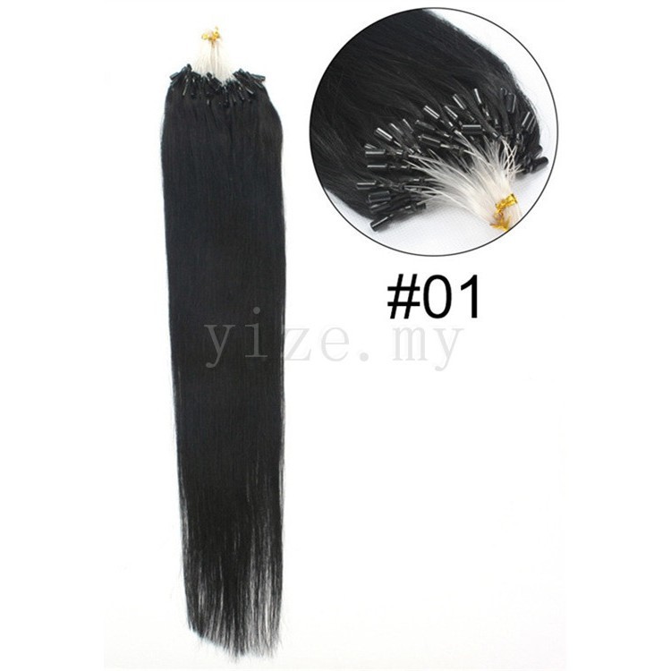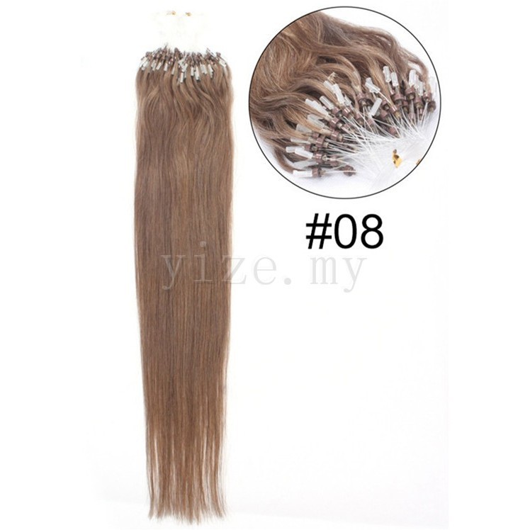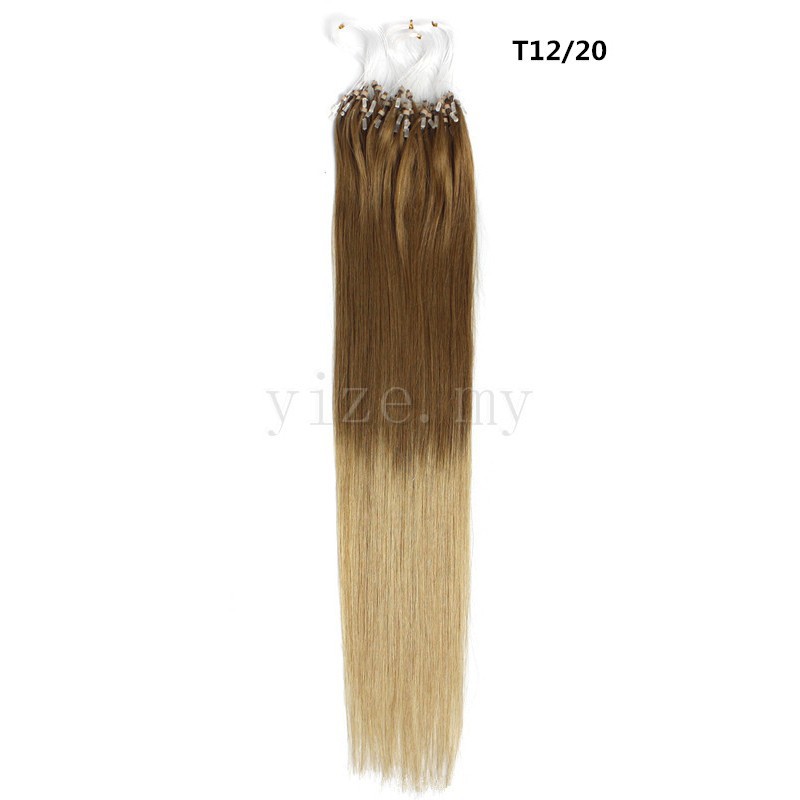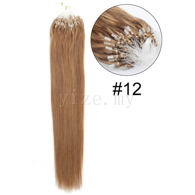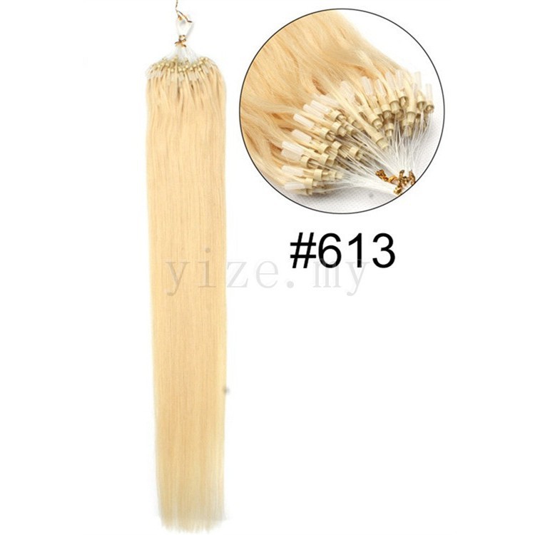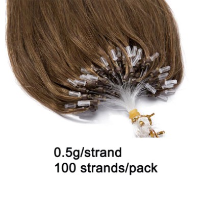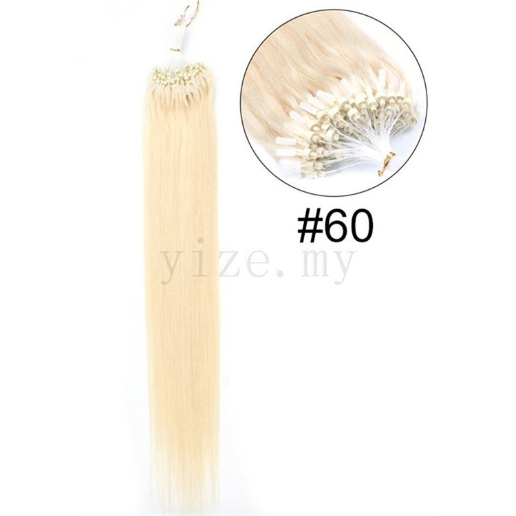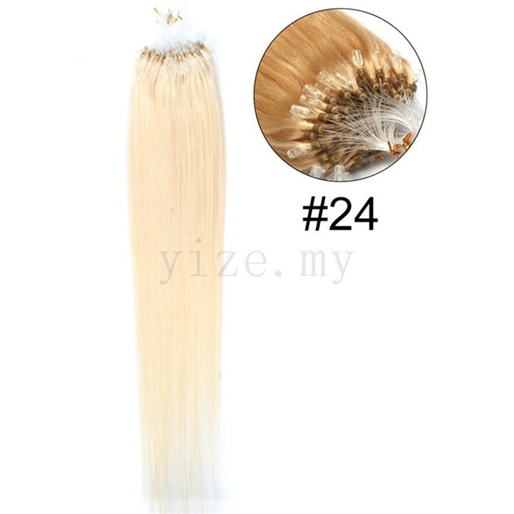 100Pcs 16"-24" 0.5g/s 100Strands Straight Micro Bead Hair Extensions Human Hair Non-Remy Micro Loop Ring Natrual Blonde Hair