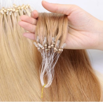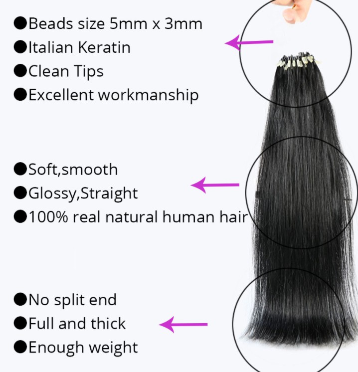 100Pcs 20"-22" 0.5g/s 100Strands Straight Micro Bead Hair Extensions Human Hair Non-Remy Micro Loop Ring Natrual Blonde Hair