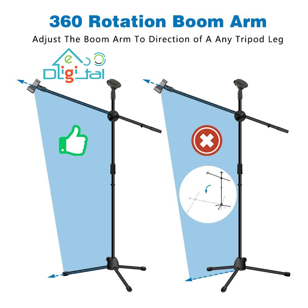 Heavy Duty Microphone Stand Mic Stand Adjustable Collapsible Tripod Boom Mic Stands-2 Mic Holders