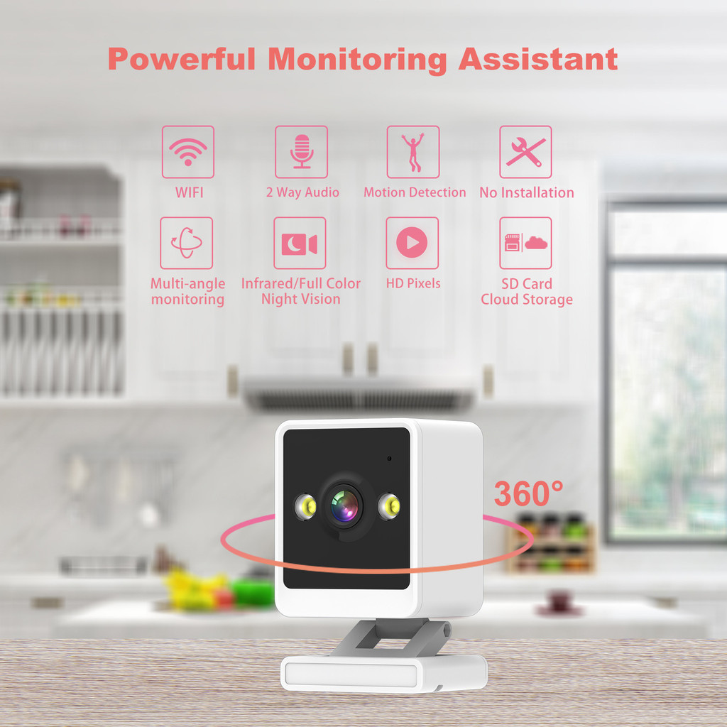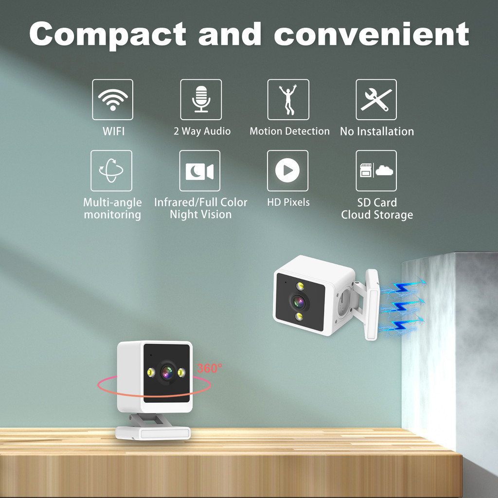 Household Magnetic Card Machine Small Square Camera Pan Tilt Rotating Telescopi Full Color Night Vision HD Monitoring Camera
