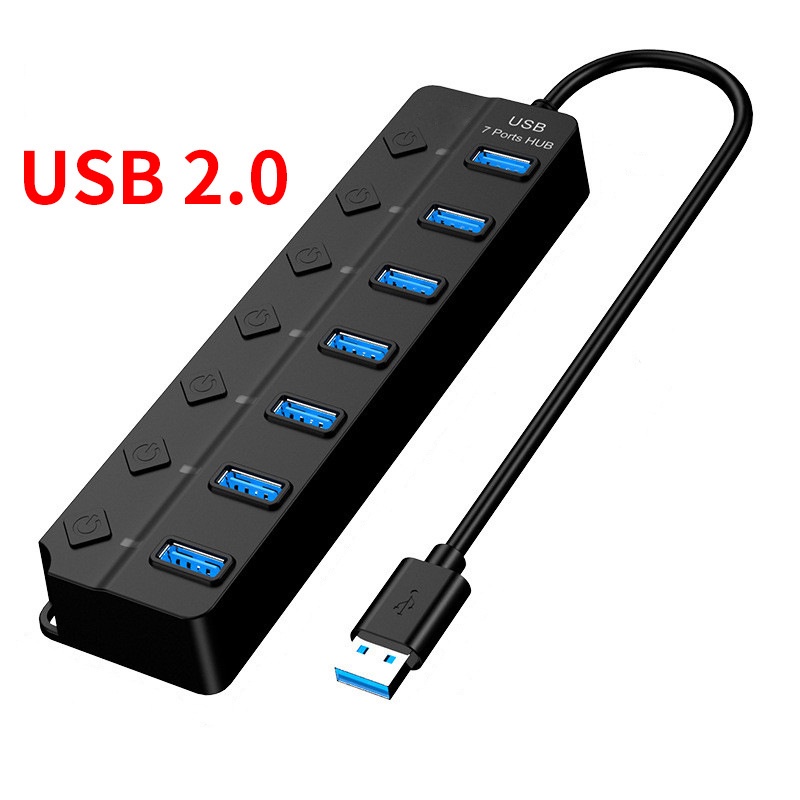 7 Port USB3.0 Adapter Portable USB Multiport Usb Hub USB 3.0 Ports Hub with Individual Switches LED Converter 5Gbps Data Transfer for Laptop PC