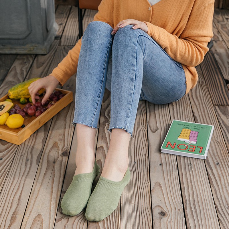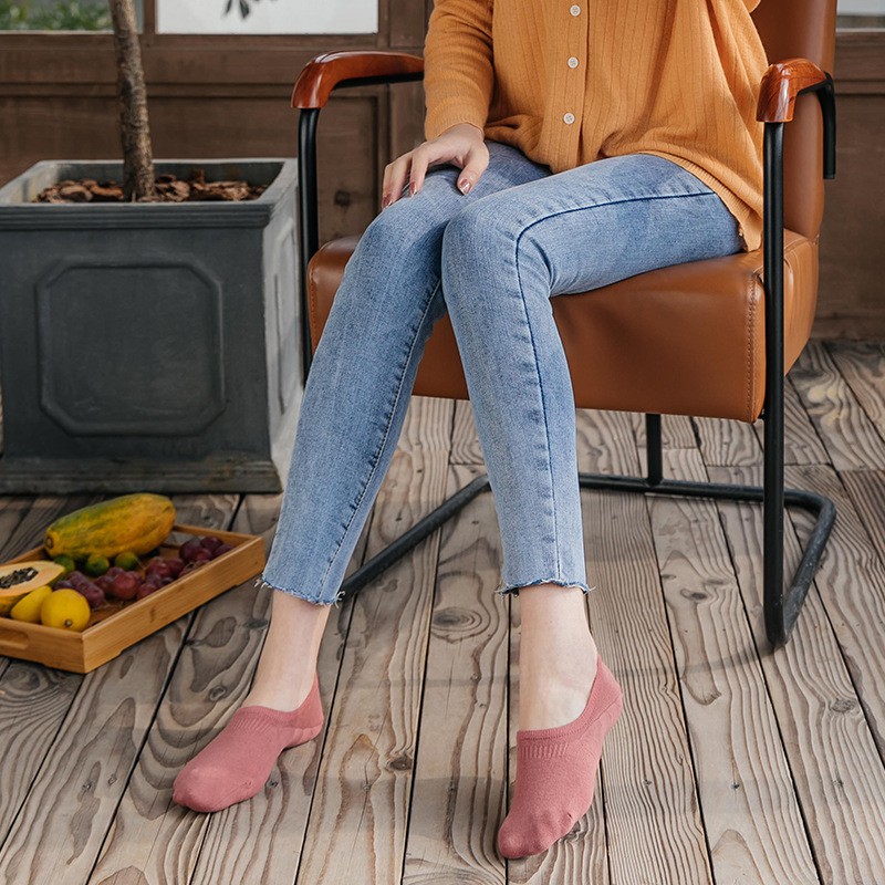 Japanese Solid Color Invisible No Show Socks Cotton Women Ladies Black White Low Cut Socks Silicone Non Slip Fashion Boat Socks