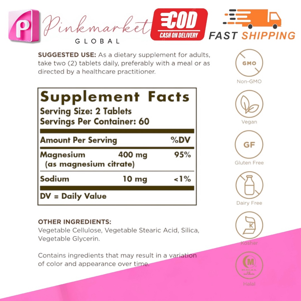 Solgar High Absorption Magnesium Citrate | 60 & 120 Tablets | Muscle Nerve Bone Health Support